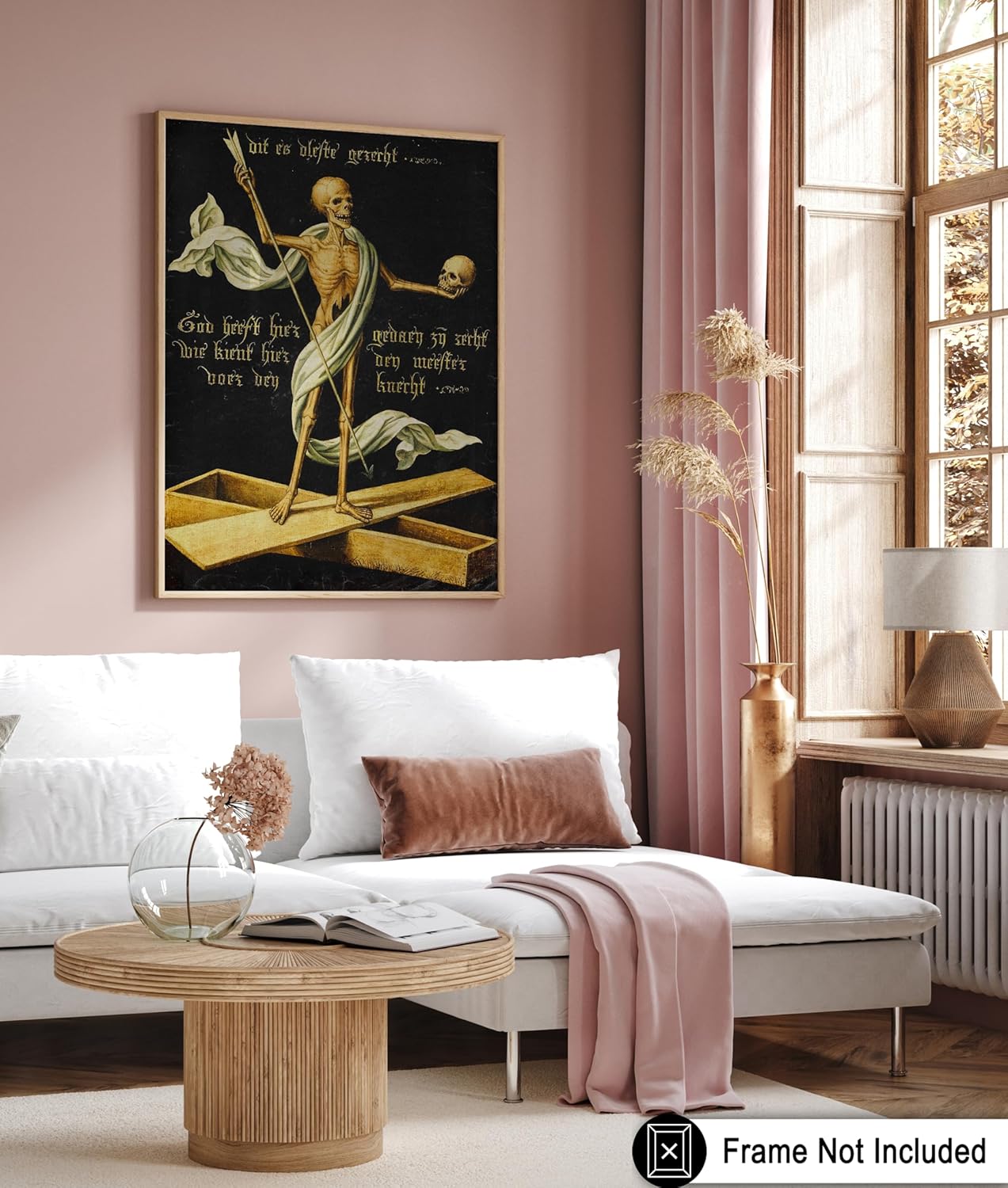 Poster Master Vintage Medieval Poster - Retro Gothic Print - Gift for Artist, Friend - Allegory of Life and Death, Skeleton, Dark, Skull - Wall Decor for Home, Living Room, 24x32 Unframed Wall Art