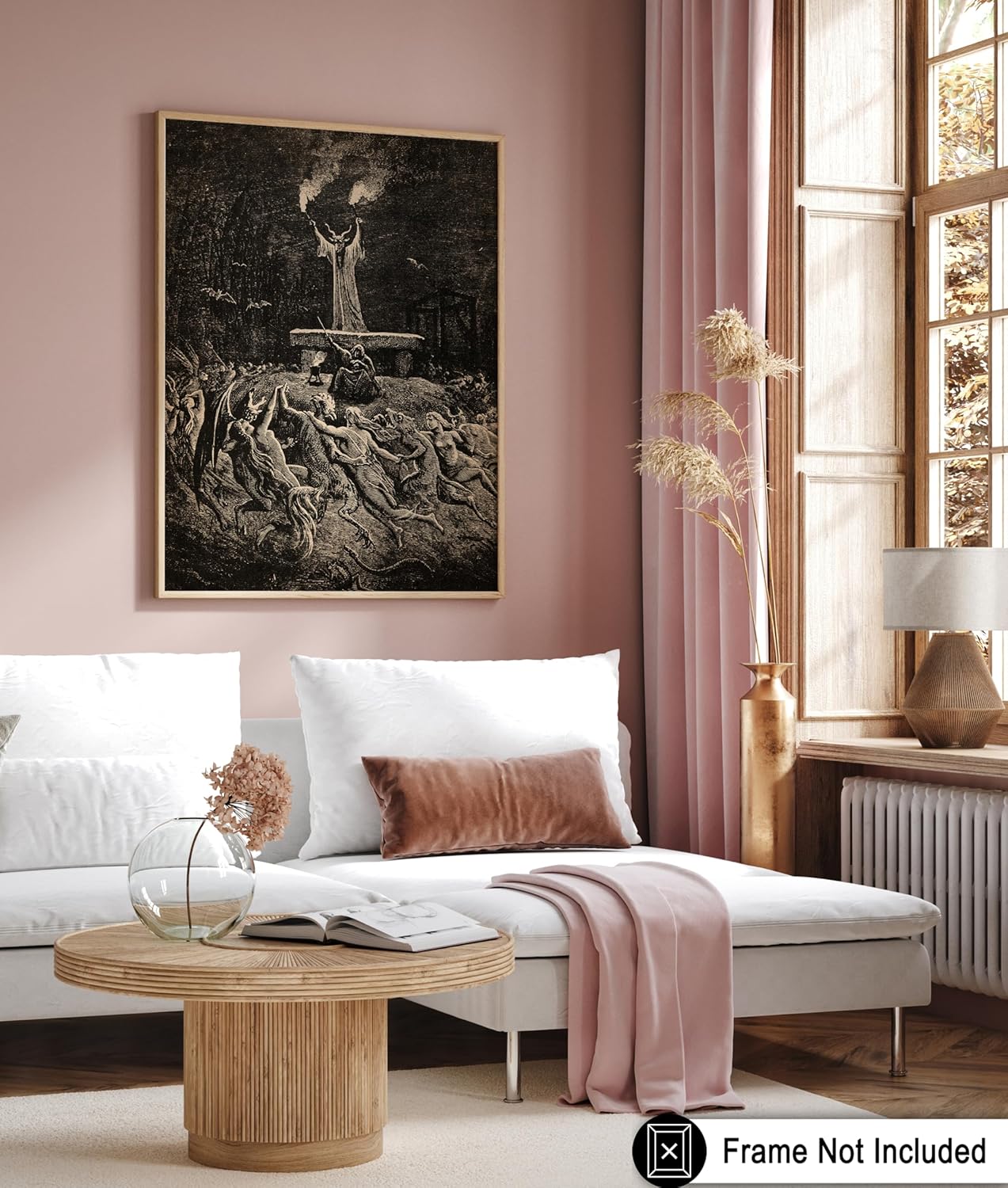 Poster Master Vintage Gustave Dore Poster - Retro Illustration Print - Gift for Gothic, Horror Fan - Dance of Sabbath, Witch, Magic, Spell - Wall Decor for Bedroom, Dorm, 24x32 Unframed Wall Art
