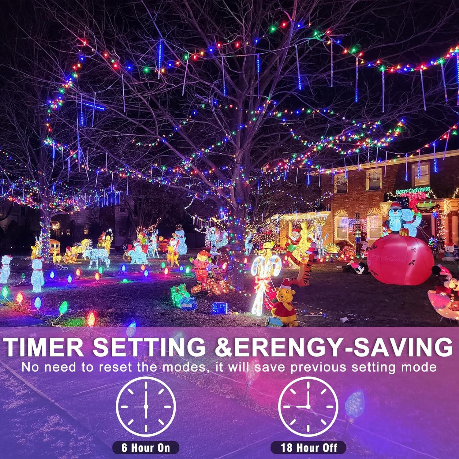 - Waterproof Fairy Lights Plug in: The multicolor Christmas lights design with IP44 outdoor waterproof, can withstand wind, snow, rain and extreme weather. String lights are equipped with a UL certified 29V low-voltage plug ensures the safety. It's safe for family with kids or pets!