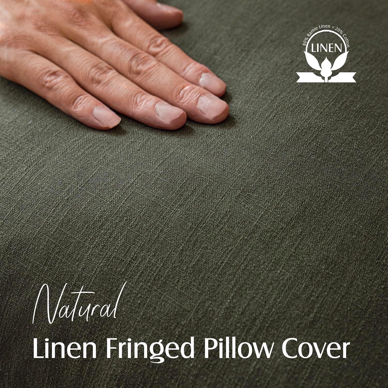 Foindtower Set of 2 Decorative Linen Fringe Throw Pillow Covers Cozy Farmhouse Cushion Cover with Tassels Accent Pillowcase for Couch Chair Sofa Bed Living Room Home Decor,18×18 Inch,Dark Olive Green