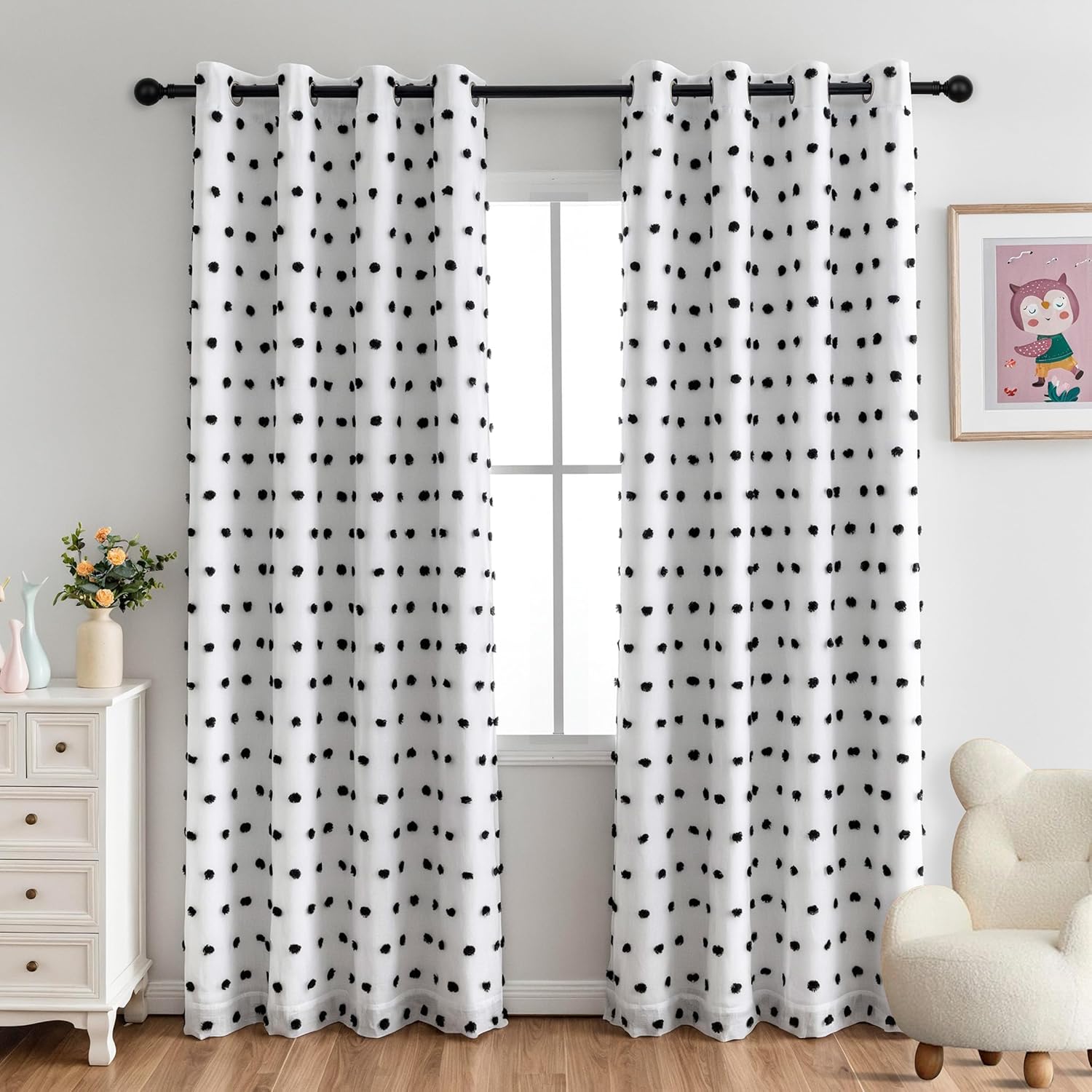 - Unique Design:These cute pom poms combine bohemian elements with modern style. The white sheer curtain is embellished with cute pom poms, adding interest, glamour and a beautiful look to your windows.