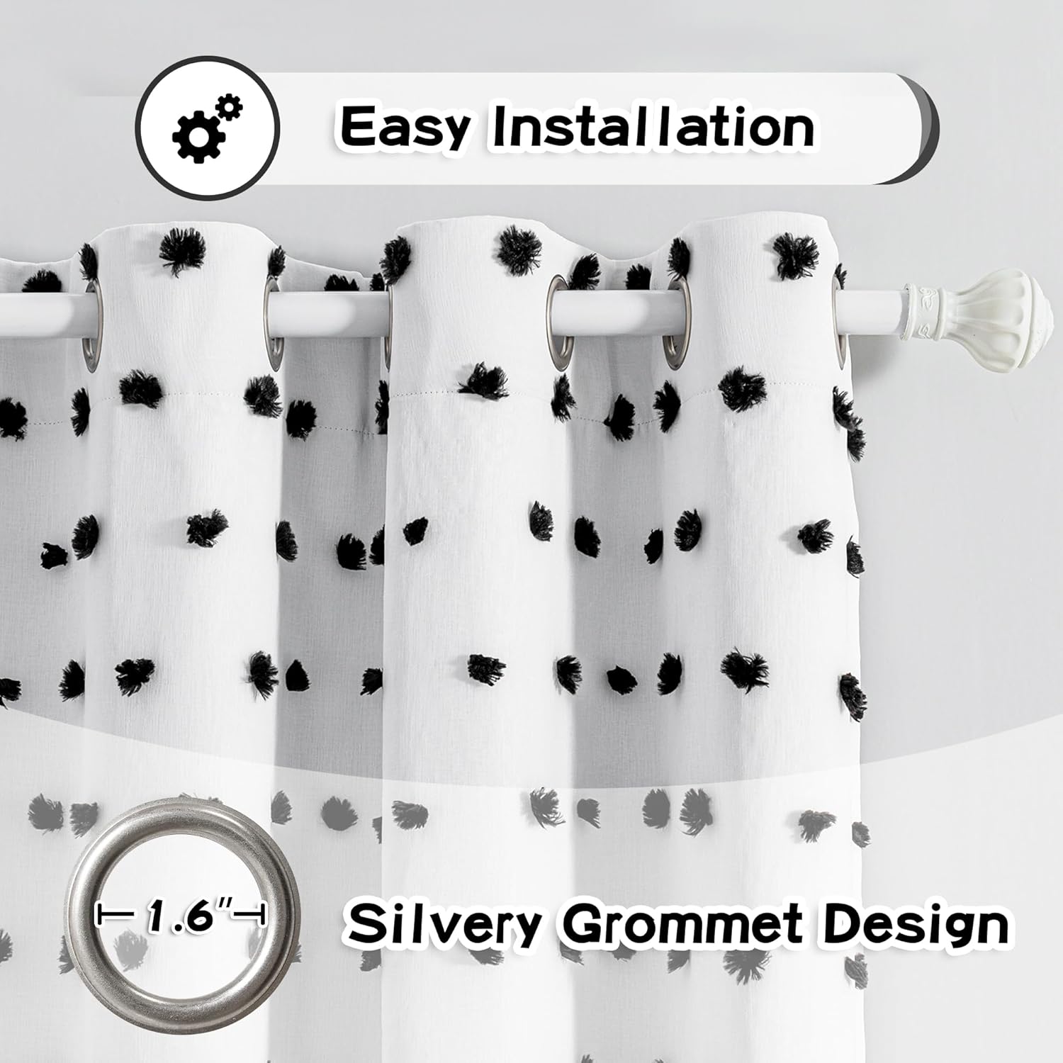 - Unique Design:These cute pom poms combine bohemian elements with modern style. The white sheer curtain is embellished with cute pom poms, adding interest, glamour and a beautiful look to your windows.