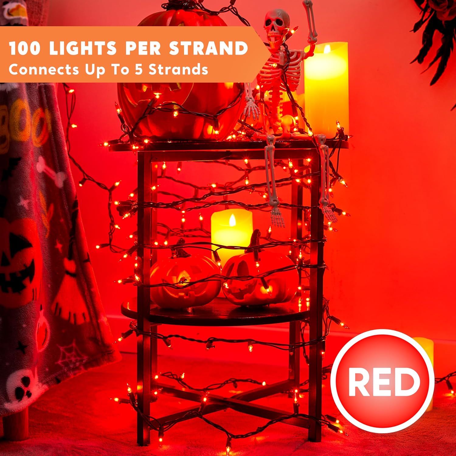 - Premium Quality. Our incandescent red Halloween string lights are designed with strong durability to accommodate harsh weather conditions. Includes spare bulbs, flashes, and fuses. If one bulb burns out, the others stay lit.
