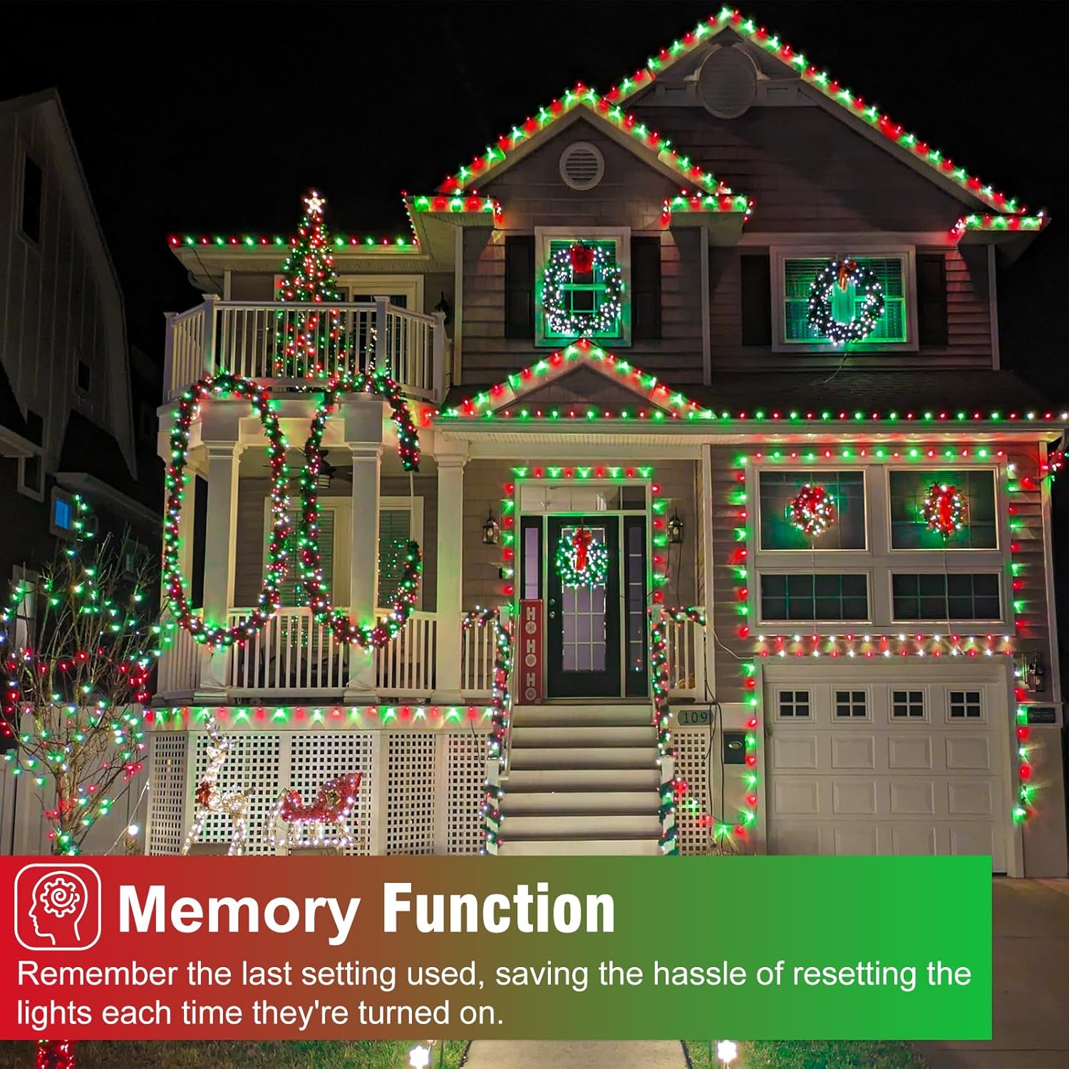 262FT 800 LED Christmas Lights, Plug in Christmas Tree Lights Outdoor with Timer and 8 Modes, Green Wire Waterproof String Light for Indoor House Yard Patio Wedding Decorations, Red Green