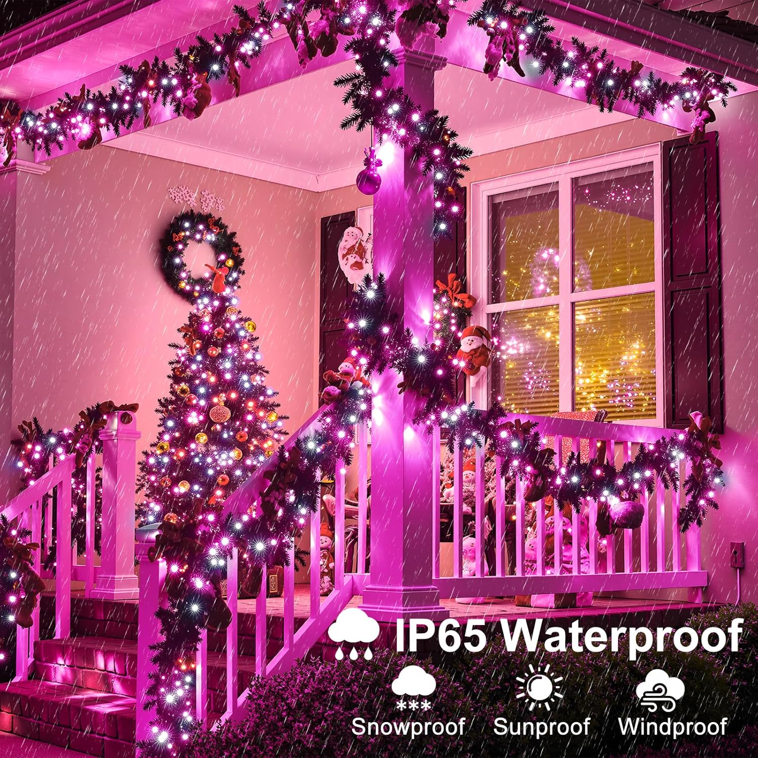 100FT 300 LED Christmas Lights, Christmas Tree Lights with 8 Modes Waterproof, Green Wire Outdoor String Lights, Plug in Xmas Decorations for Indoor House Yard Holiday, Pink White