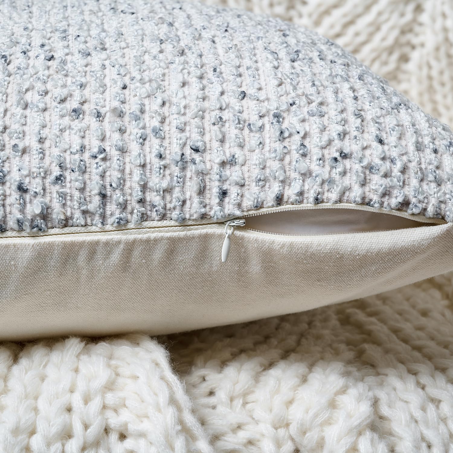 Striped Throw Pillow Covers 18x18 Set of 2 Blue Textured Boucle Chic Morden Boho Accent Farmhouse Square Decorative Couch Pillow Covers for Home Decor Bed Sofa Living Room