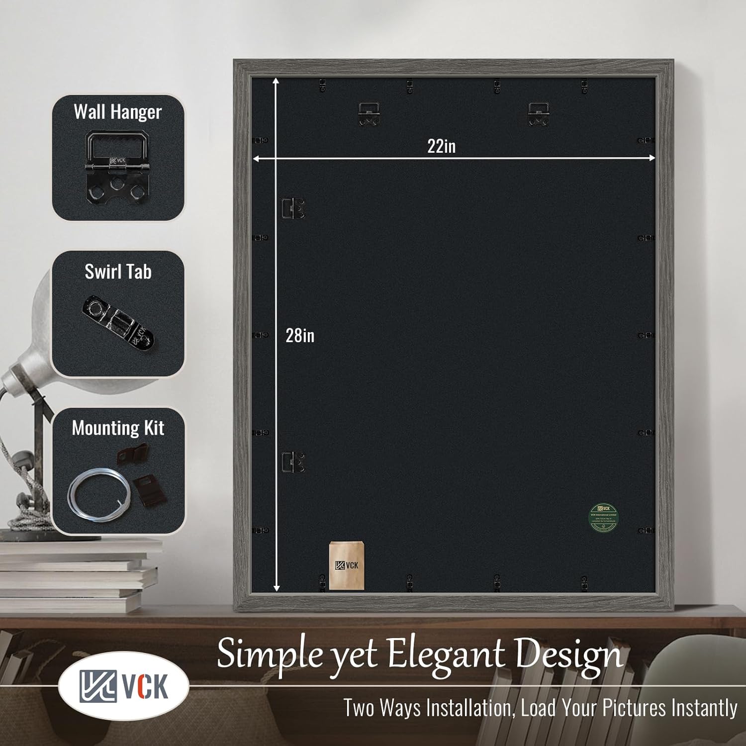 - Effortless Installation: This grey picture poster frame comes with hanging hardware for both vertical and horizontal display and features a unique spin-lock design for easy loading of 22x28 or 28x22 photos, prints, diplomas, puzzles, art, and more