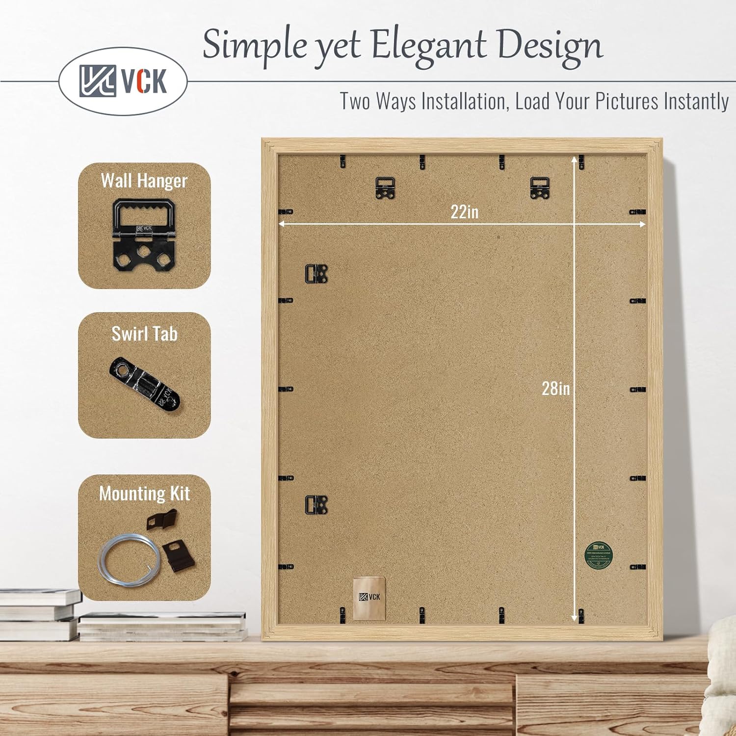 VCK 22x28 Oak Poster Frame 3 Pack, Natural Solid Wood Picture Frames, Wall Mounting Hanging