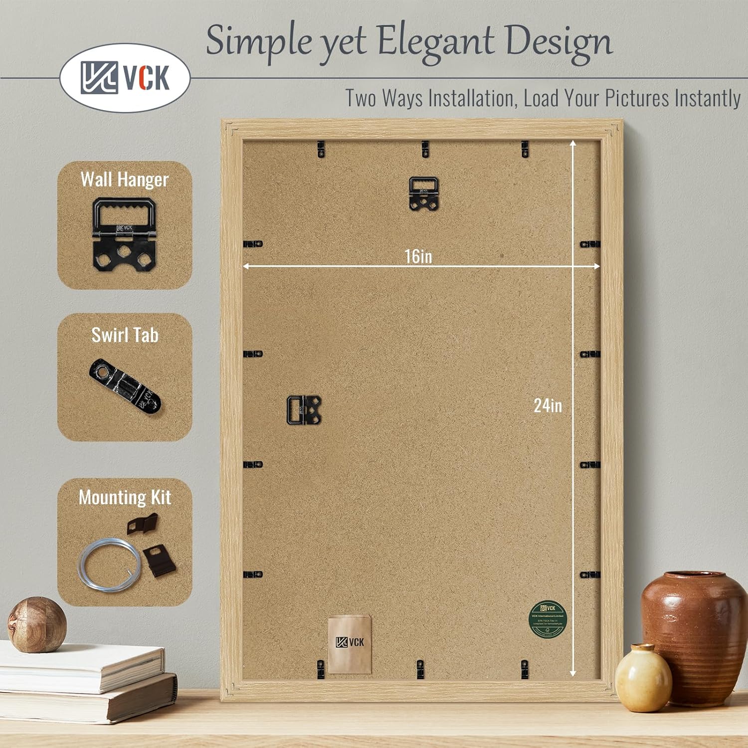 VCK 16x24 Oak Wood Frame for Poster & Picture, Natural Solid Wood Photo Frames 3 Pack, Wall Gallery Frame