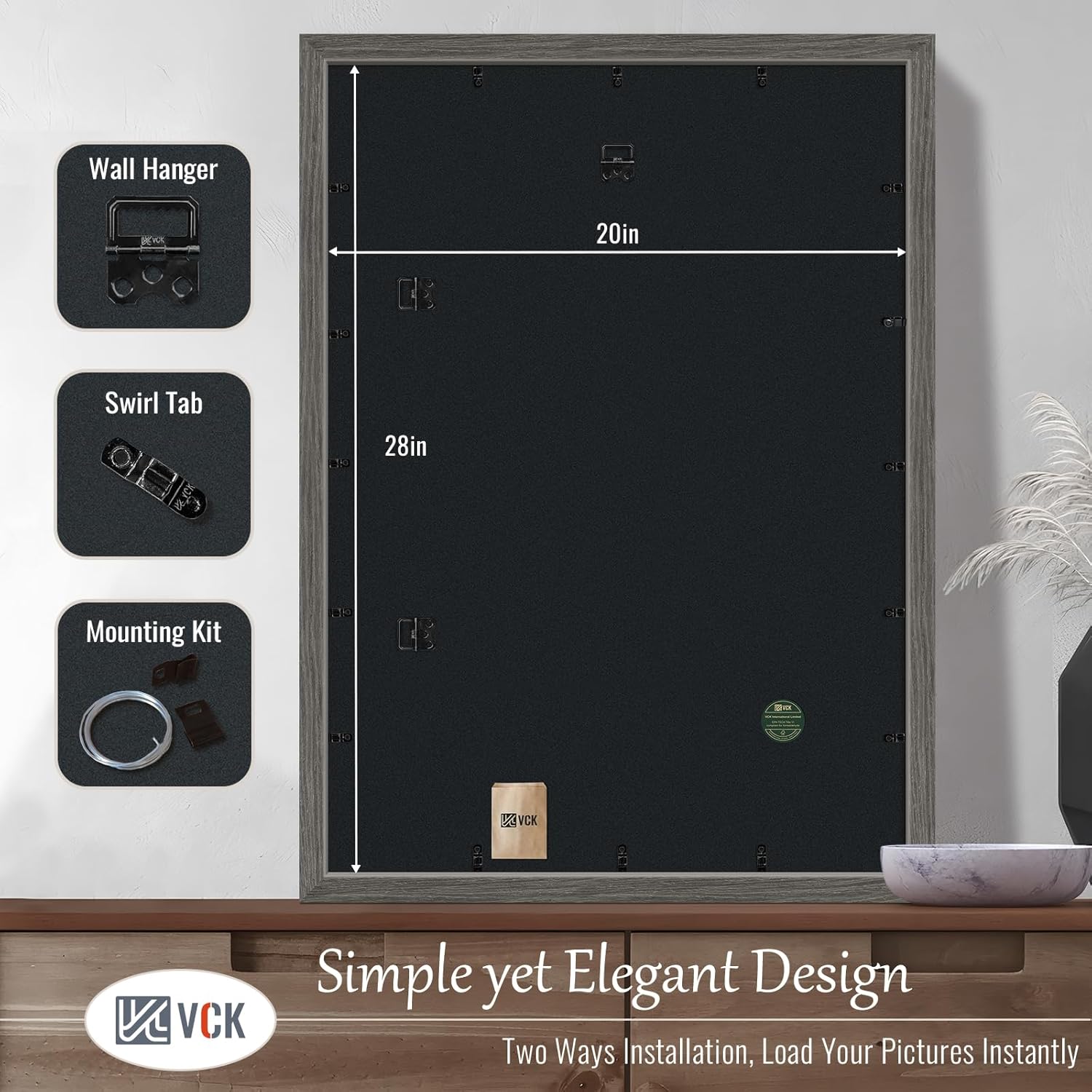 - Effortless Installation: This grey picture poster frame comes with hanging hardware for both vertical and horizontal display and features a unique spin-lock design for easy loading of 20x28 or 28x20 photos, prints, diplomas, puzzles, art, and more