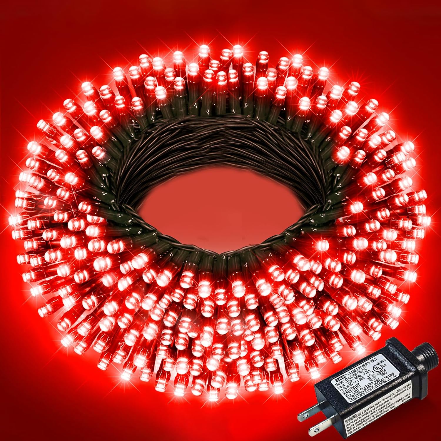 Christmas Lights Outdoor, 66FT 200 LED Christmas Tree Lights with 8 Modes Waterproof, Plug in Green Wire String Twinkle Light for Indoor Bedroom Patio Wedding Holiday Decorations, Red
