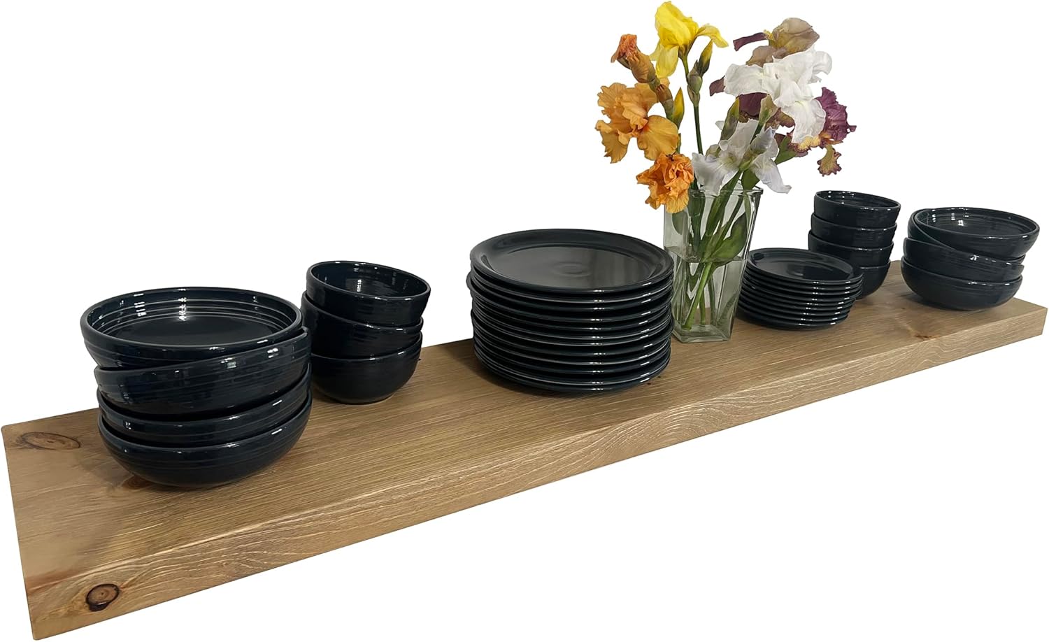 - Elevate Your Space with Rustic Charm: Transform your living room or any space with our large floating shelves for wall. These 60 inch floating shelf beauties, crafted from natural wood, add a touch of rustic warmth and provide ample display space for your cherished items.