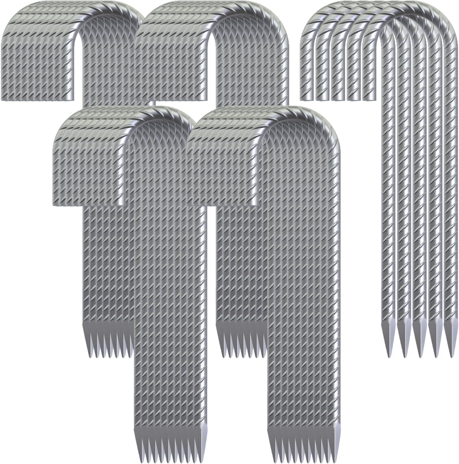 - Ribbed Design for Extra Grip: The ribbed rebar design provides superior grip in the ground, preventing the stakes from pulling out during windy conditions. The sharp chisel point makes installation quick and easy, even in tough or rocky soils, ensuring secure anchoring and long-lasting stability