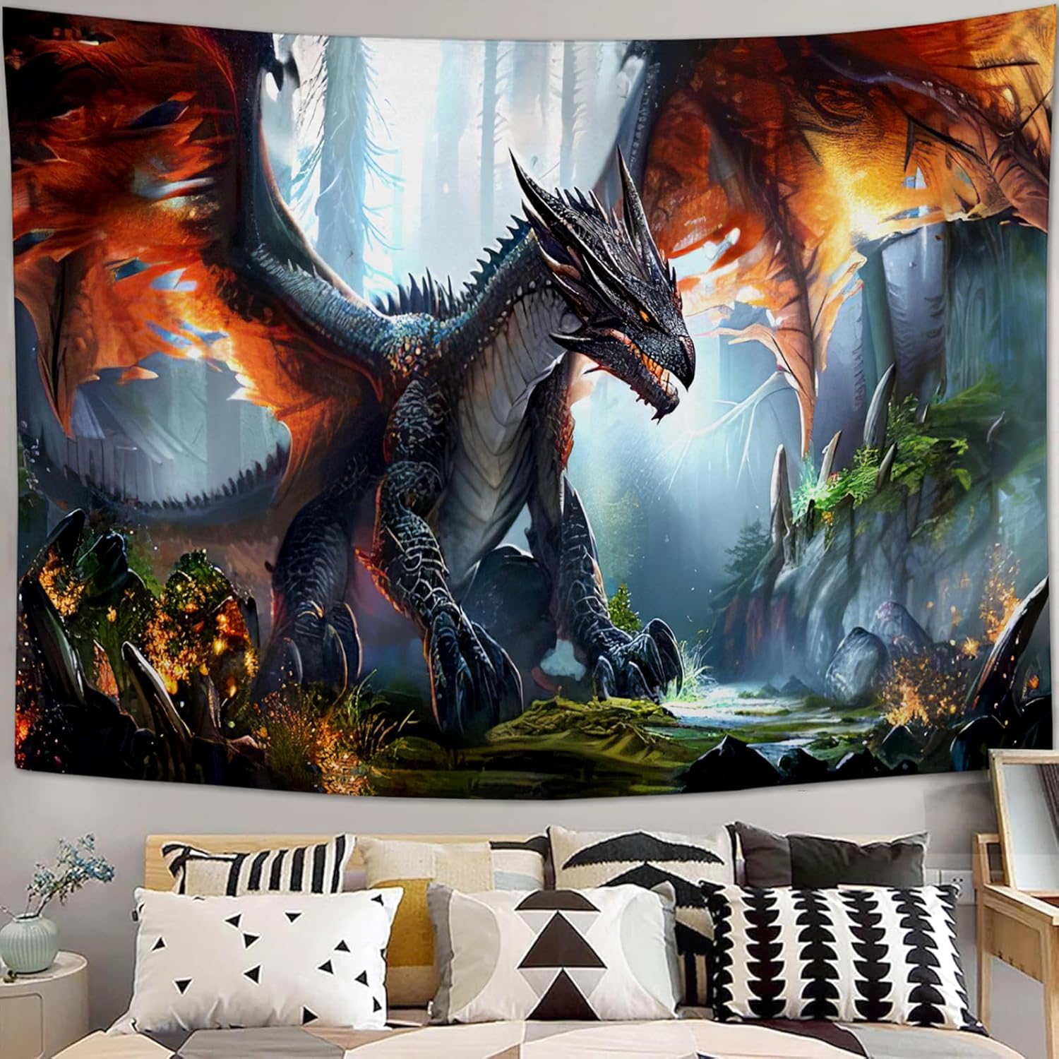 Dinosaur Tapestry Dragon Tapestries Fabric Wall Hanging Aesthetic Space Indoor Outdoor Wall Art Tablecloth Bedspread Decoration for Boy’s Bedroom Dormitory Living Room Home Decor 60"x90"