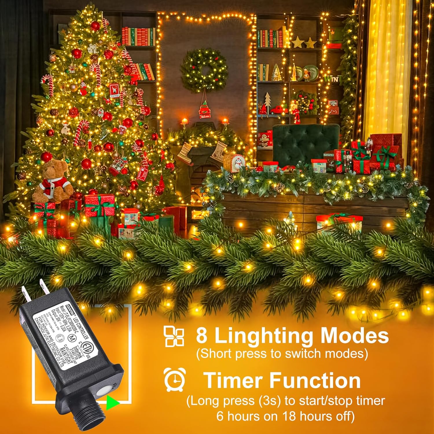 - 【Safe to Use】: The Christmas lights indoor have passed UL certification and its output voltage is 29V, lower than standard body safe voltage 36V, The power is only 6w, which is energy saving and safety. It is safe to touch after many hours of use and will not overheat, safe for kids and pets
