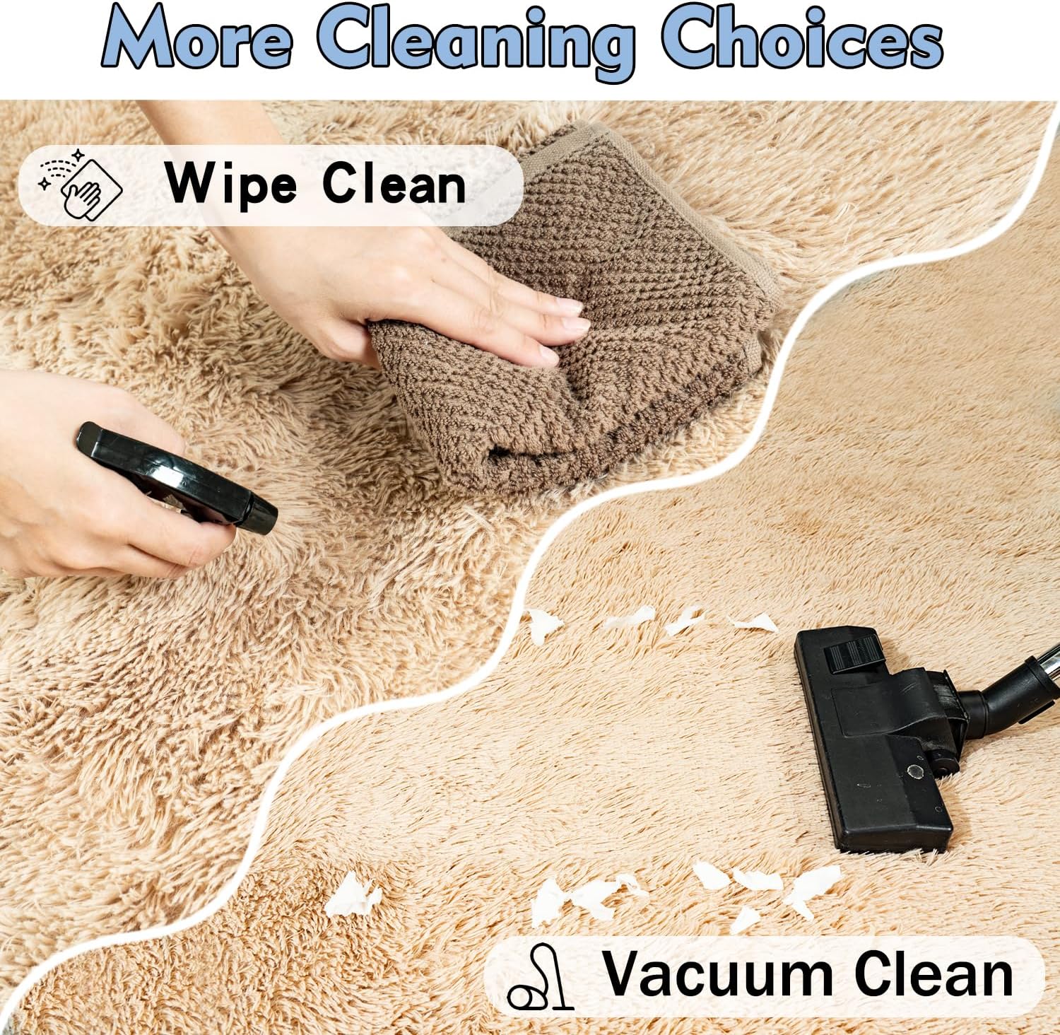 - Easy Maintenance:Cleaning our modern floor rugs is a breeze. Simply use a handheld vacuum or wipe with a damp cloth. For optimal longevity, we recommend hand cleaning instead of using a machine, Hang the area rugs to dry naturally after washing, don't use the dryer as this will help preserve the rug's super soft texture.