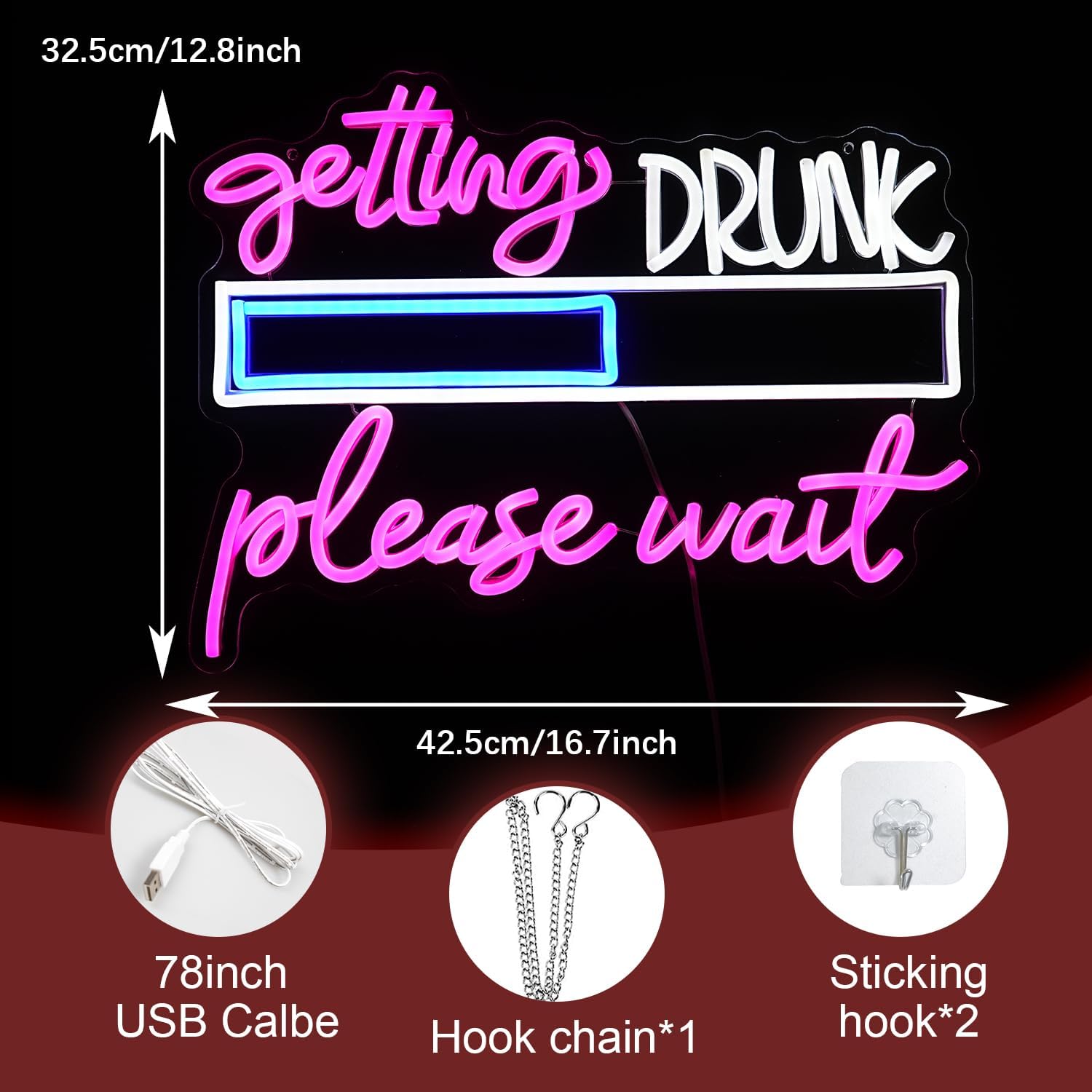 Drink Please Wait Neon Sign Dimmable Letters Neon Light for Wall Decor USB Powered LED Drinking And Wait Light Up Sign for Pub Man Cave Home Bar Restaurant Decor Party(16.7 * 12.8In)