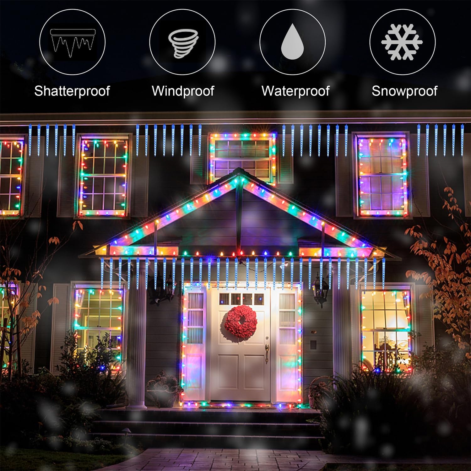 - High Quality & Waterproof: Our icicle meteor shower rain lights are made of premium PC transparent plastic, high quality SMD LED beads, super bright and will be attractive even in long distance. The Christmas lights are Waterproof IP65, can withstand rainy, snowy and other bad weather, perfect for outdoor use