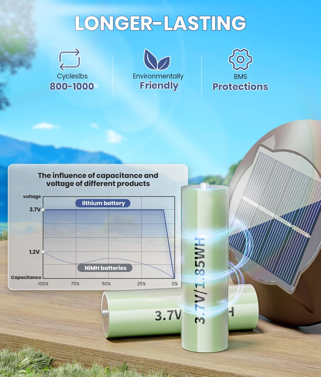 - [Ultra Long Lasting Battery&Auto On/Off] Unlike ordinary ni-mh batteries, we use more reliable and larger capacity Lithium-ion battery. The solar panels convert sunlight into electricity and store it in the battery during the day, and the solar lights automatically illuminate at night. NEWMESSI upgraded solar landscape lights only need to be exposed to sunlight for 6-8 hours to provide up to 12-16 hours of bright lighting time