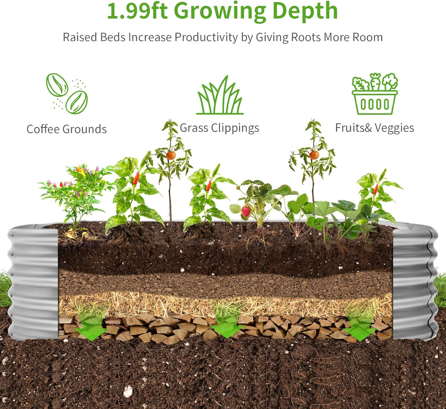 - Professional metal raised garden bed size: 6×3×1.99ft, you can grow vegetables, fruits, flowers, herbs and other plants in courtyards, yards, gardens and greenhouses.