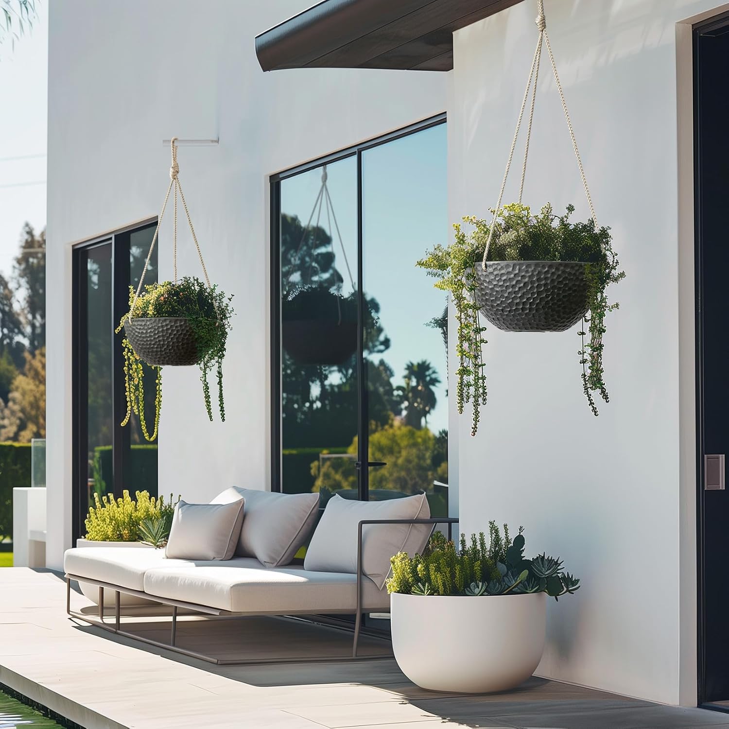 - WEATHER RESISTANT - Allow you to enjoy these hanging planters for outdoor plants in all types of weather. Built to withstand intense sun and harsh winter temperatures, free from fade, frost, crack and peel damage. Suitable for both indoor and outdoor uses.
