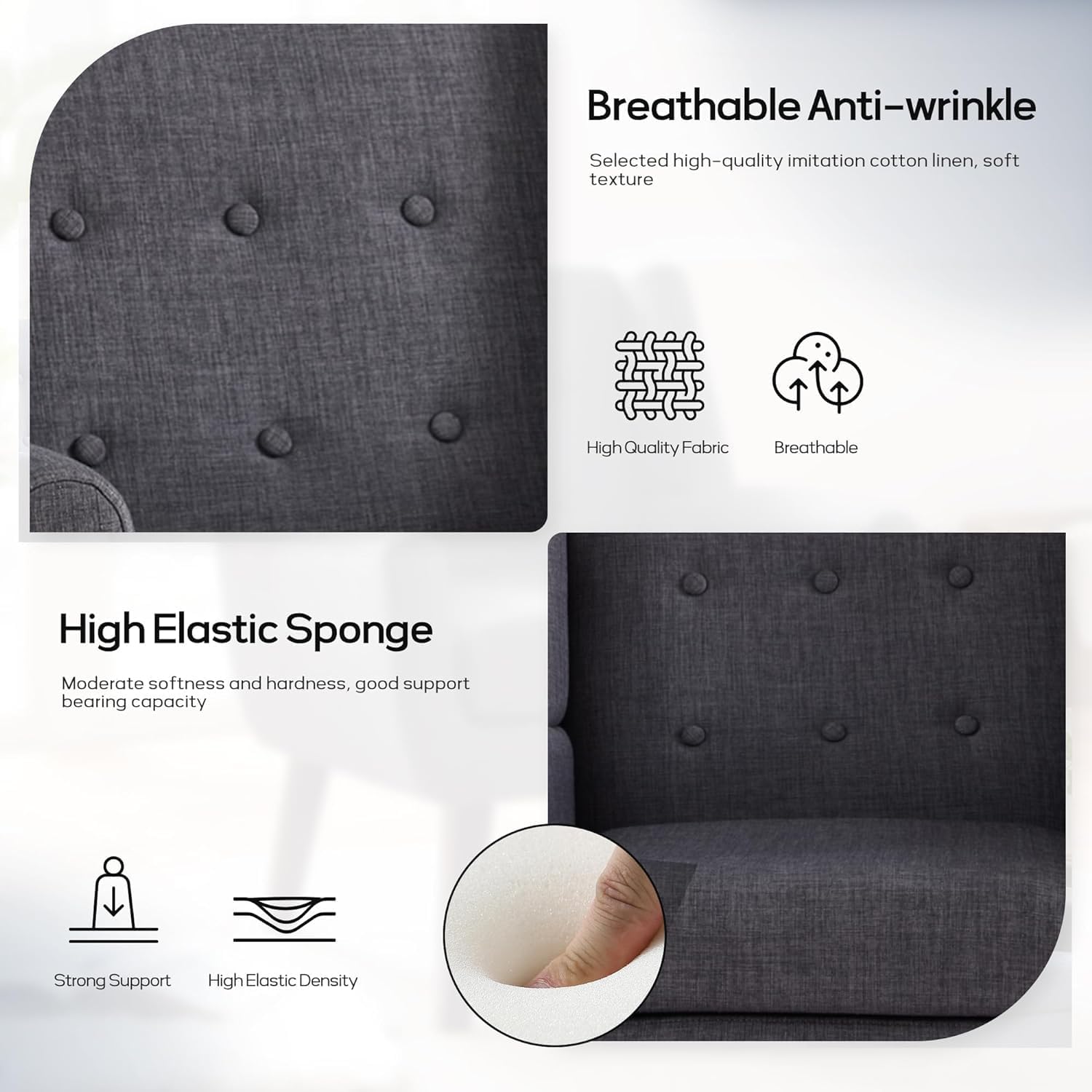 - Modern Comfort Experience: The cushion and backrest of this armchair are made of high-density and high-resilient native sponge, which can provide maximum comfort for you.Soft linen fabric foam padded cushions with enough width and depth to give you hours of comfortable sitting without sacrificing fashion and style
