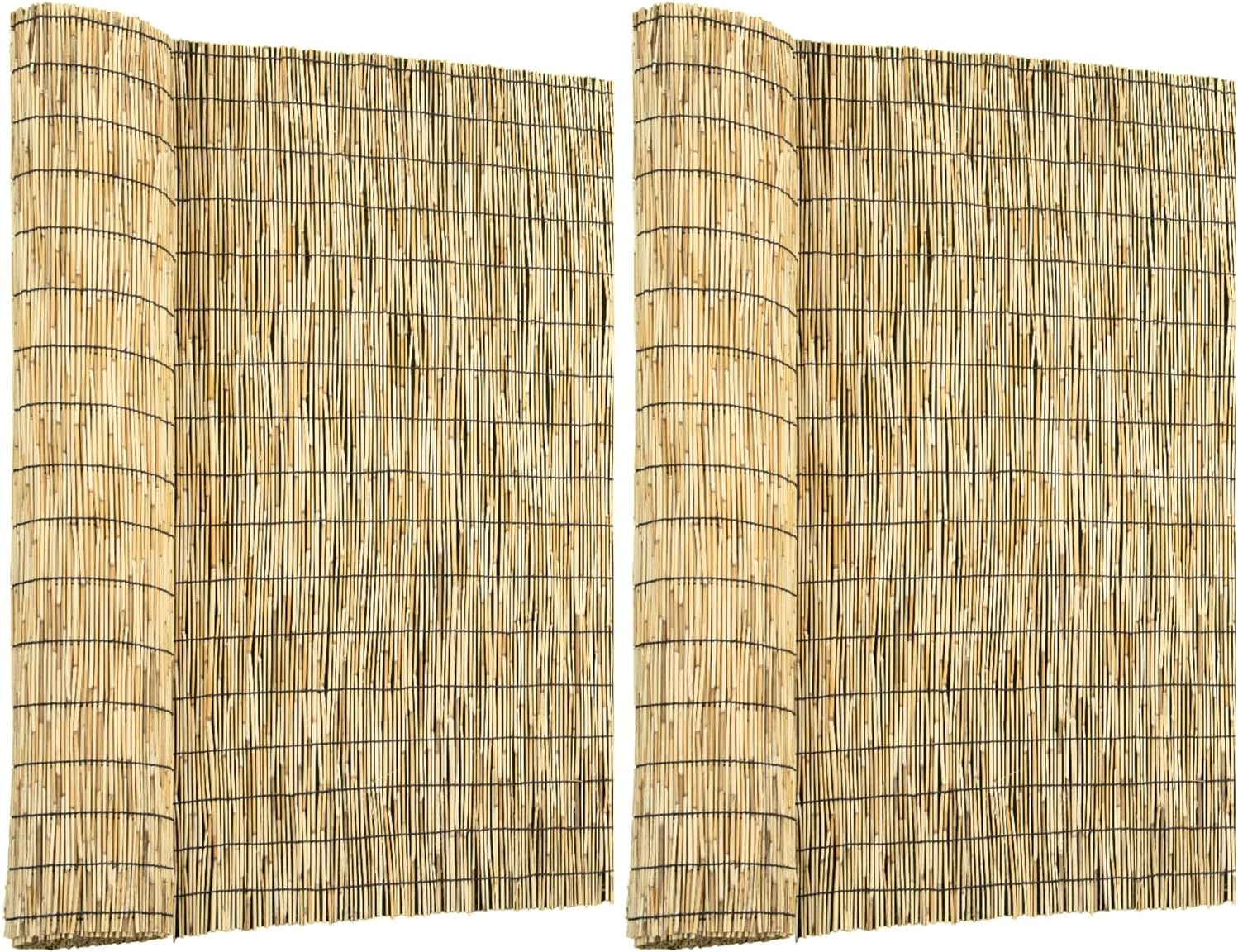 Natural 2 Pack 4FT X 16.4FT Reed Fencing Roll, Balcony Privacy Shade Reed Bamboo Fencing Garden Fence Border, Wind Block Sunshade Fence Screen for Outdoor Yard Patio Flower Bed Edge