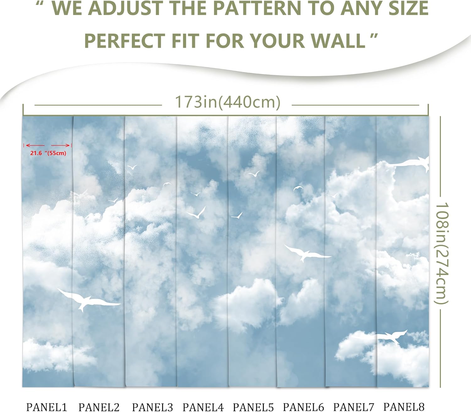 - MATERIAL - Cloud murals for walls is made of premium silk material. Ecological printing with lightfast, UV resistant lasting colors. Durable and waterproof, fadeless and odorless, non-toxic and eco-friendly.