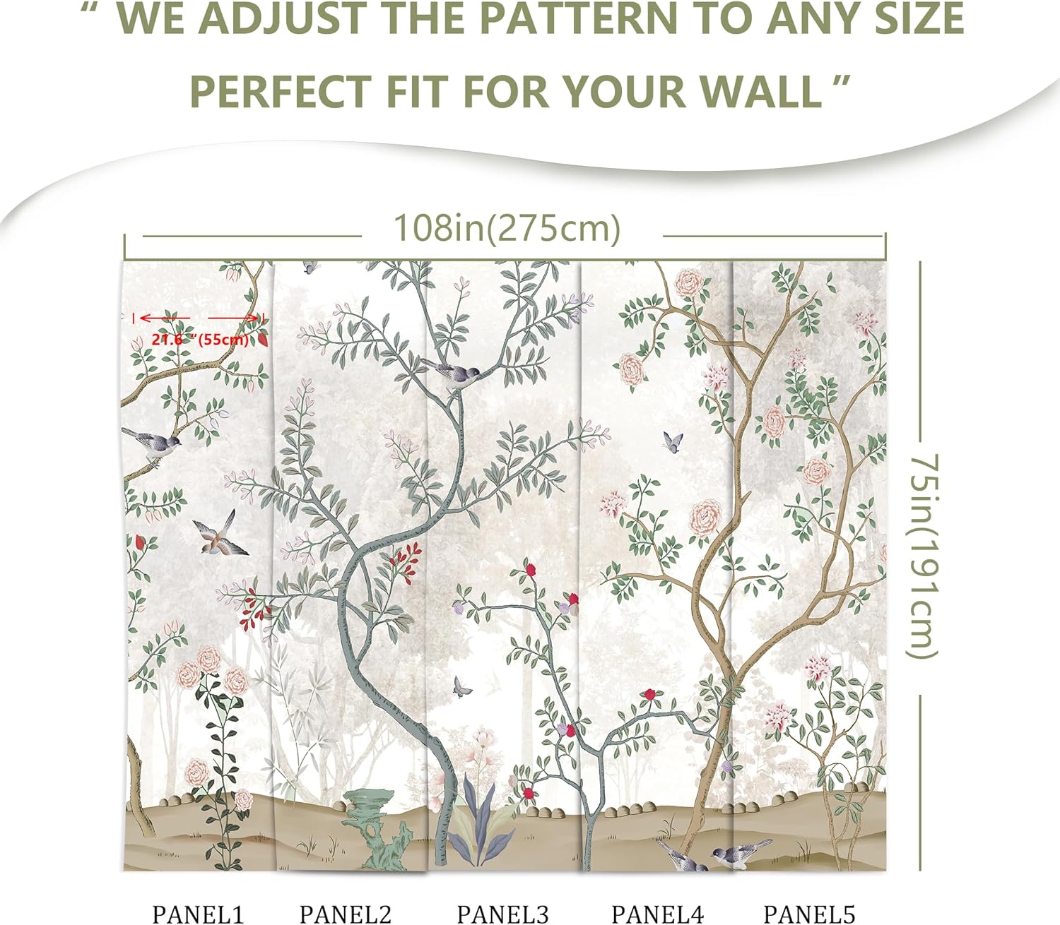- MATERIAL - Floral bird murals for walls is made of premium silk material. Ecological printing with lightfast, UV resistant lasting colors. Durable and waterproof, fadeless and odorless, non-toxic and eco-friendly.