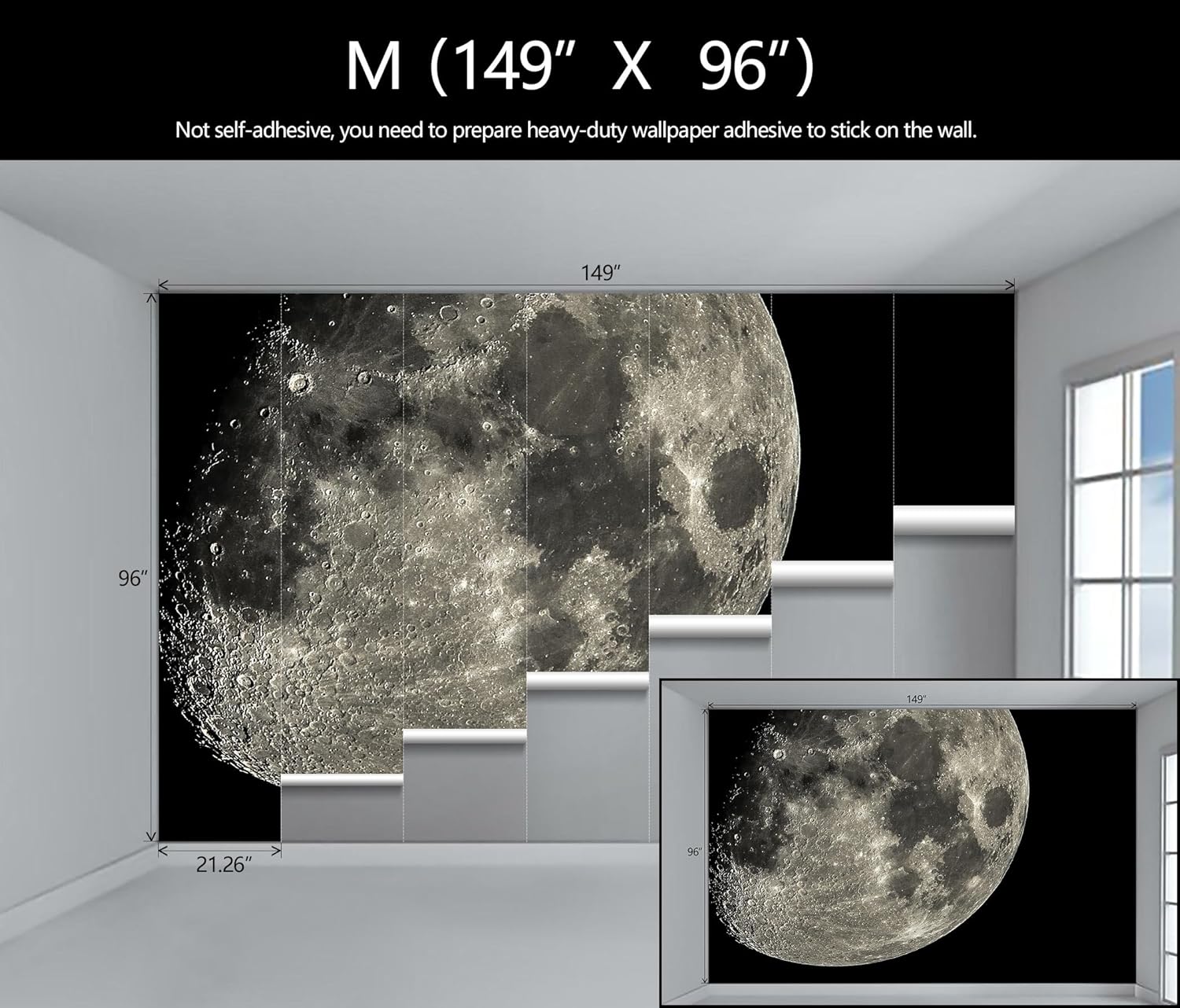 Moon Wallpaper Dark Night Sky Landscape Mural Living Room Bedroom Kids Room (Not Peel and Stick)