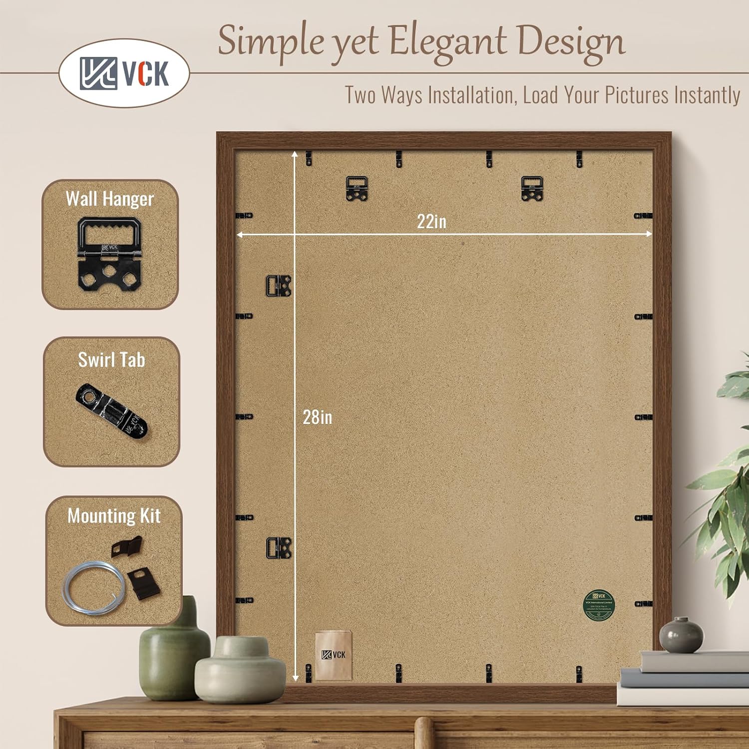 - Elegant Charm: VCK brown wood-grain picture frame. Drawing inspiration from Appalachian ancient forests, seamlessly blends modern minimalist design with natural aesthetics to create a cozy ambiance, perfect for showcasing your favorite memories