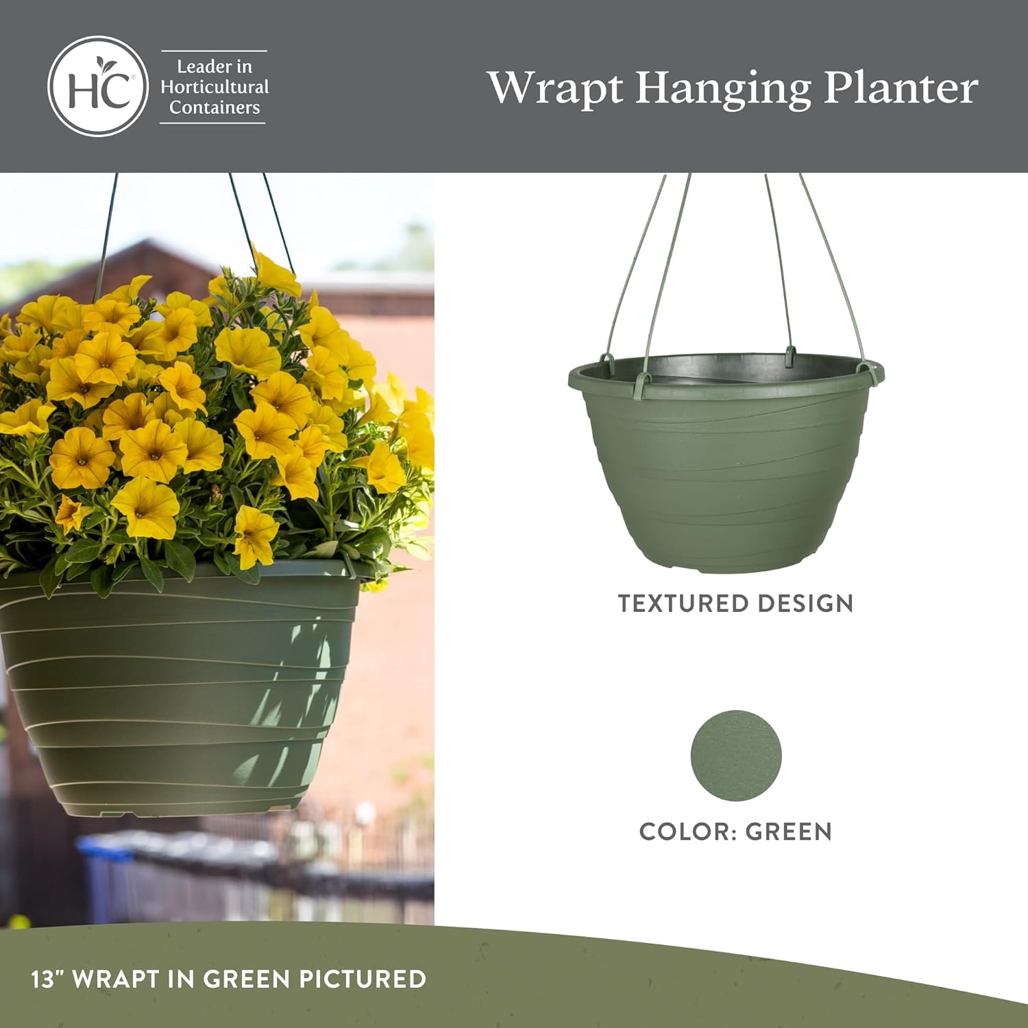The HC Companies Wrapt Hanging Planters - Lightweight Plant Pot Hanger for Hanging Plants, Vegetables & Herbs - Outdoor & Indoor Hanging Basket for Plants (13" Green, Pack of 2)