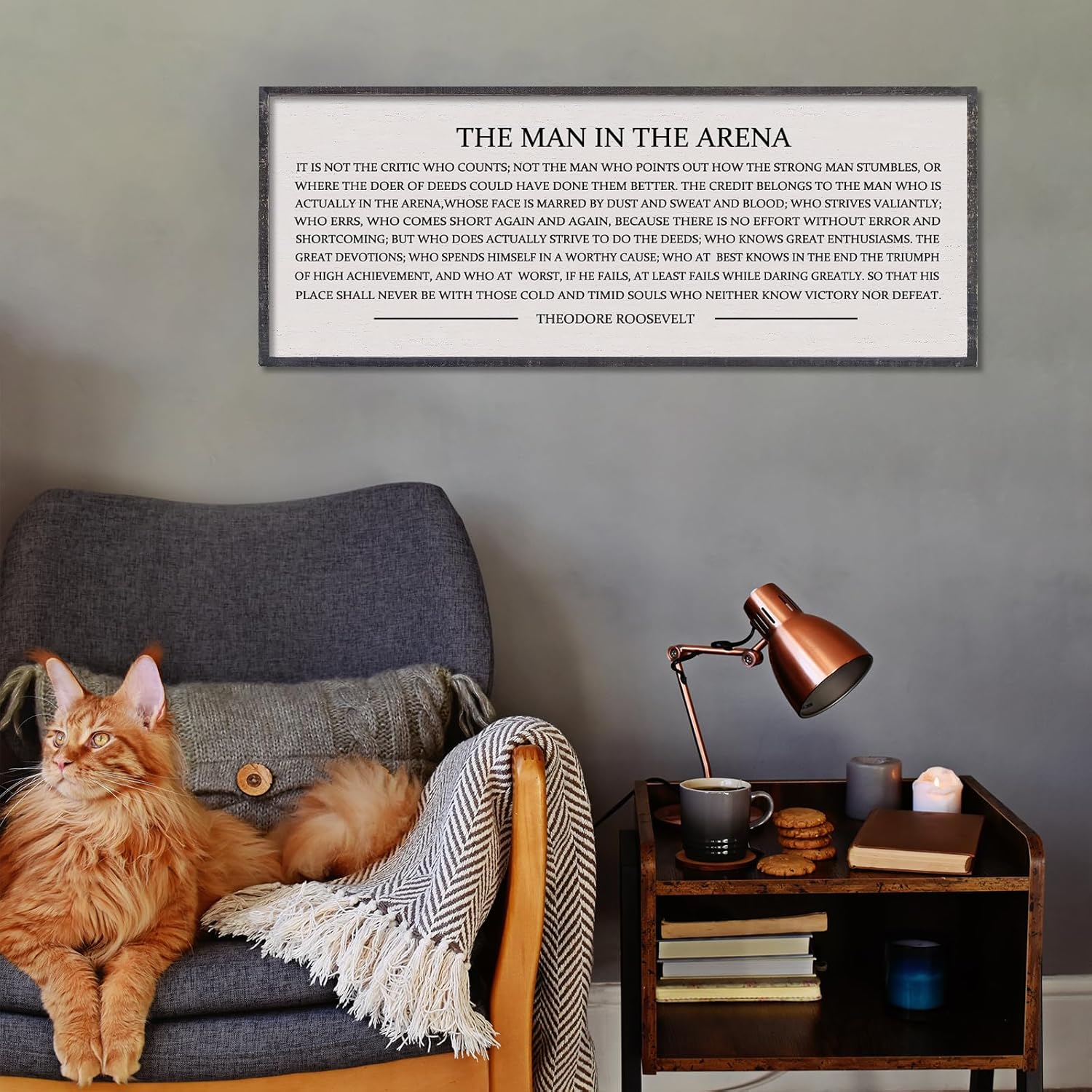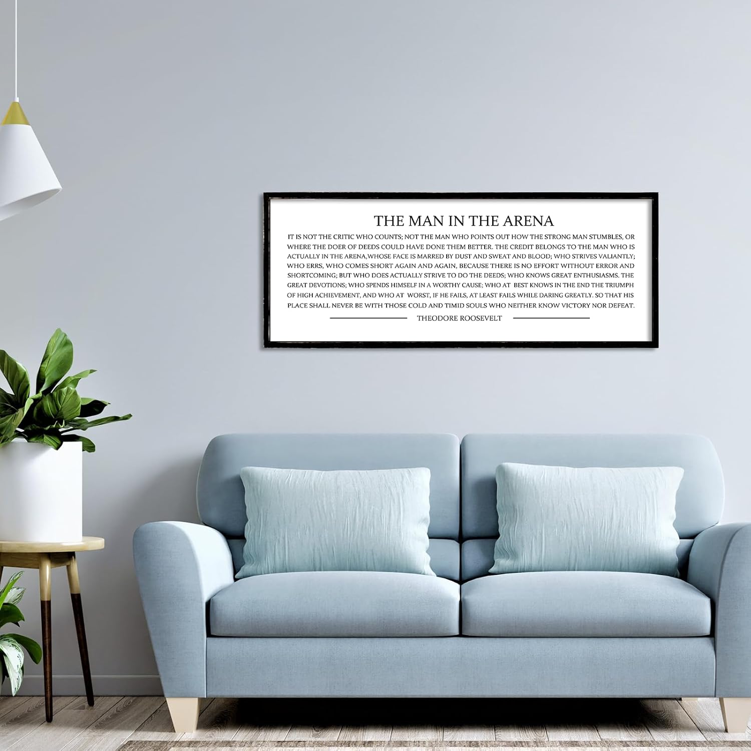 LuZhiQiang The Man in the Arena Wall Decor 32''x12'' Inspirational Quotes Office Wood Framed Sign Rustic Home Motivational Art For Man Entrepreneur Morden Living Room Wall Hanging Decor (Black)