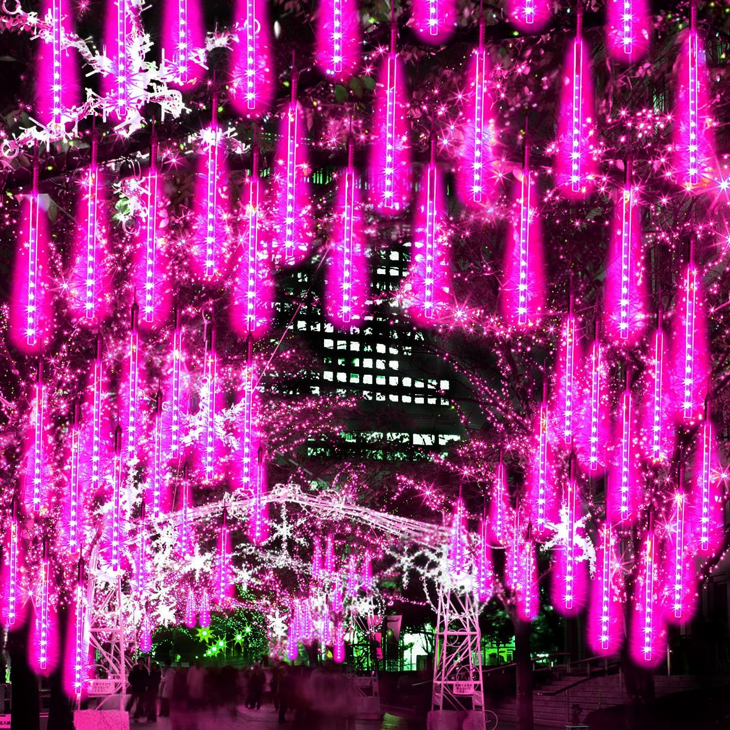 【4 Pack】 Christmas Meteor Shower Rain Lights 20inch, Totally 40 Tube 1440 LEDs Icicle Light Outdoor Raindrop Lights for Xmas Halloween Wedding Party Tree Holiday Decoration, Pink