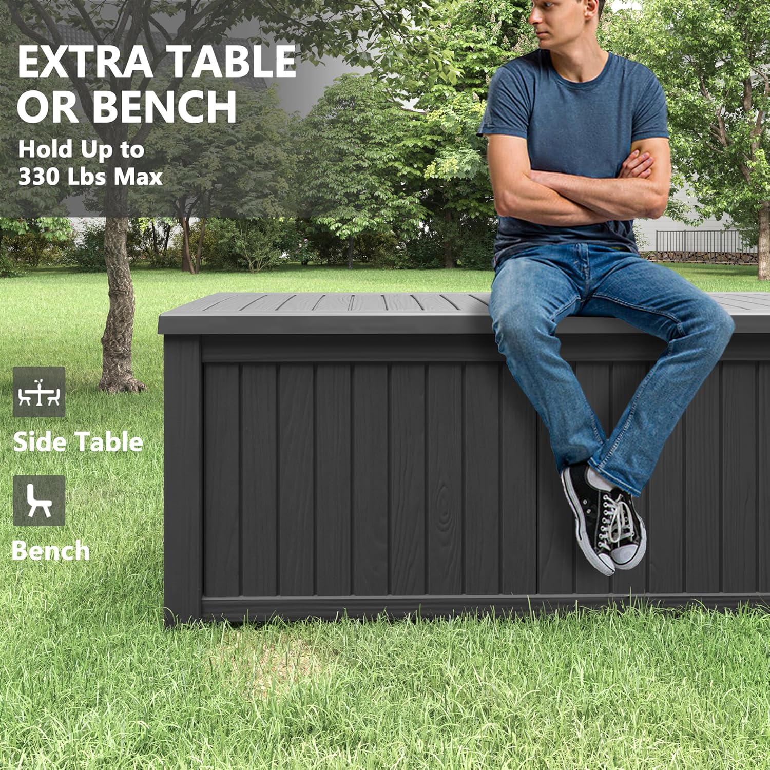 - MULTIFUNCTIONAL OUTDOOR ESSENTIALS - More than just a large storage box, it is a multifunctional product for any outdoor environment. It can store a variety of items such as camping gear, sports equipment, as well as serving as a handy makeshift table or bench for parties or relaxation.