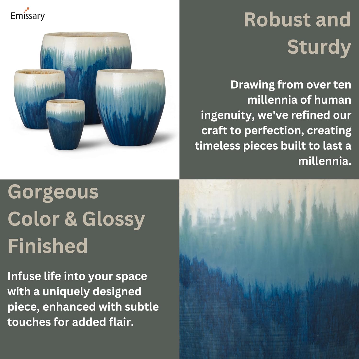 Emissary Home and Garden 13in., 16in., 19in.,23.5in. H Blue Snow Stoneware Round Planters with High-fire Treatment (Set of 4)