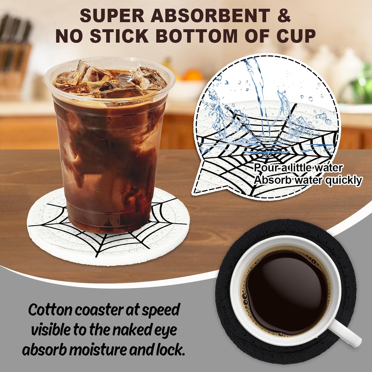 - The Package Includes - 4Pcs Halloween theme handmade braided cotton coasters in different designs, enough to meet your various needs.