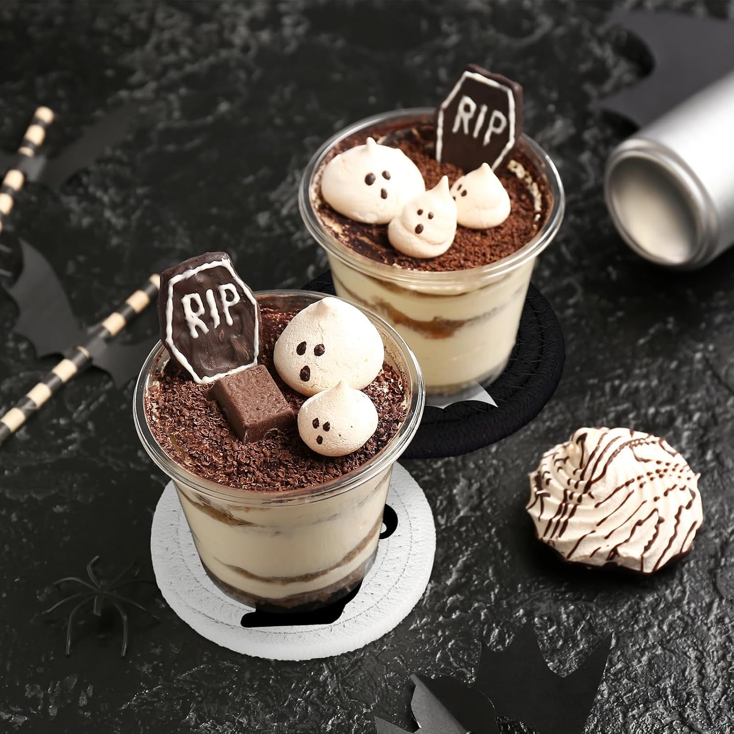 - Halloween Theme - Our drink coasters featuring Halloween theme, designed with cat, bat, ghost and spiderweb, colored in black and white, cute and delicate, will nicely increase festive atmosphere.