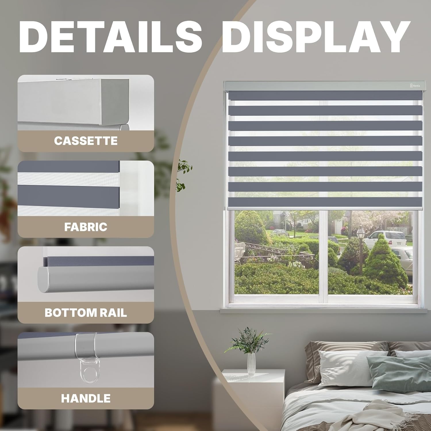 - 【Various Room Styles】Crafted from premium voile and polyester, this double-layer roller blinds for indoor windows adjusts light effortlessly. Fit for any room: block out light in bedrooms and nurseries for restful sleep, or filter light in living rooms, kitchens, and studies for a cozy atmosphere.