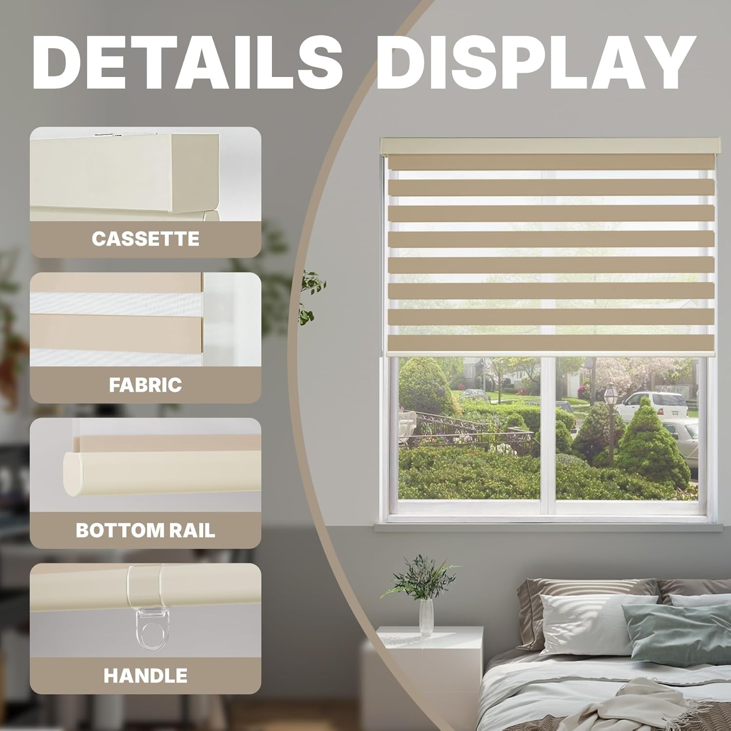 HESTIA Cordless Zebra Blinds Light Filtering Roller Shades UV Blocking Blackout Privacy Indoor Window Shades for Home Office Day and Night, Beige,46" W x 60" H