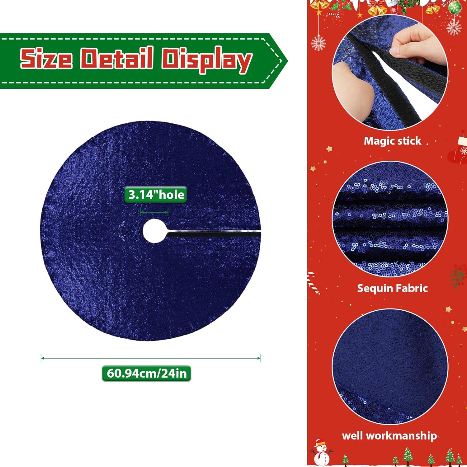 Eternal Beauty Christmas Tree Skirt, 24 Inch Navy Blue Sequin Tree Skirt Small Xmas Tree Skirt for Christmas Tree Decorations