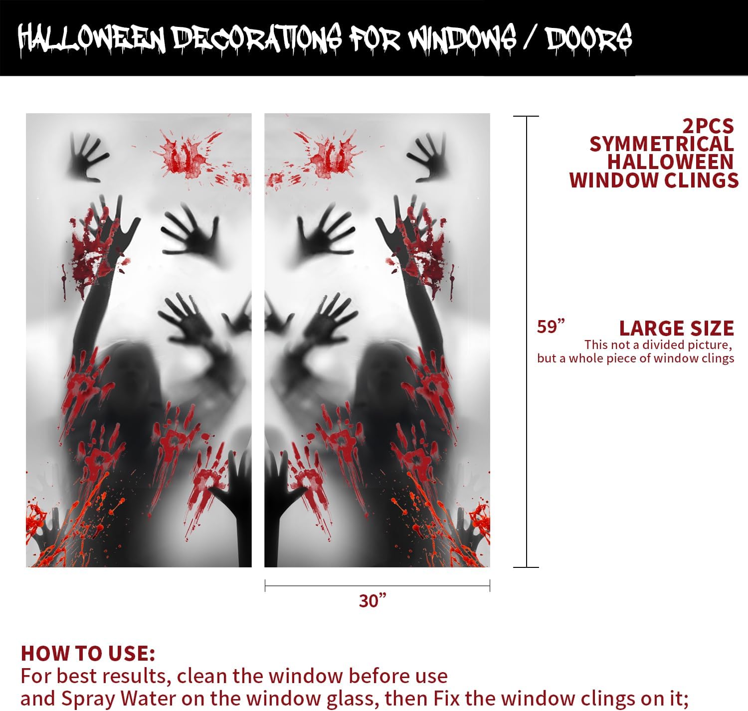 - LARGE HALLOWEEN WINDOW CLINGS/DOOR COVERS: Our product is a whole piece of cover, not the divided pieces; This window door cover is easy to decorate to achieve the effect of horror!