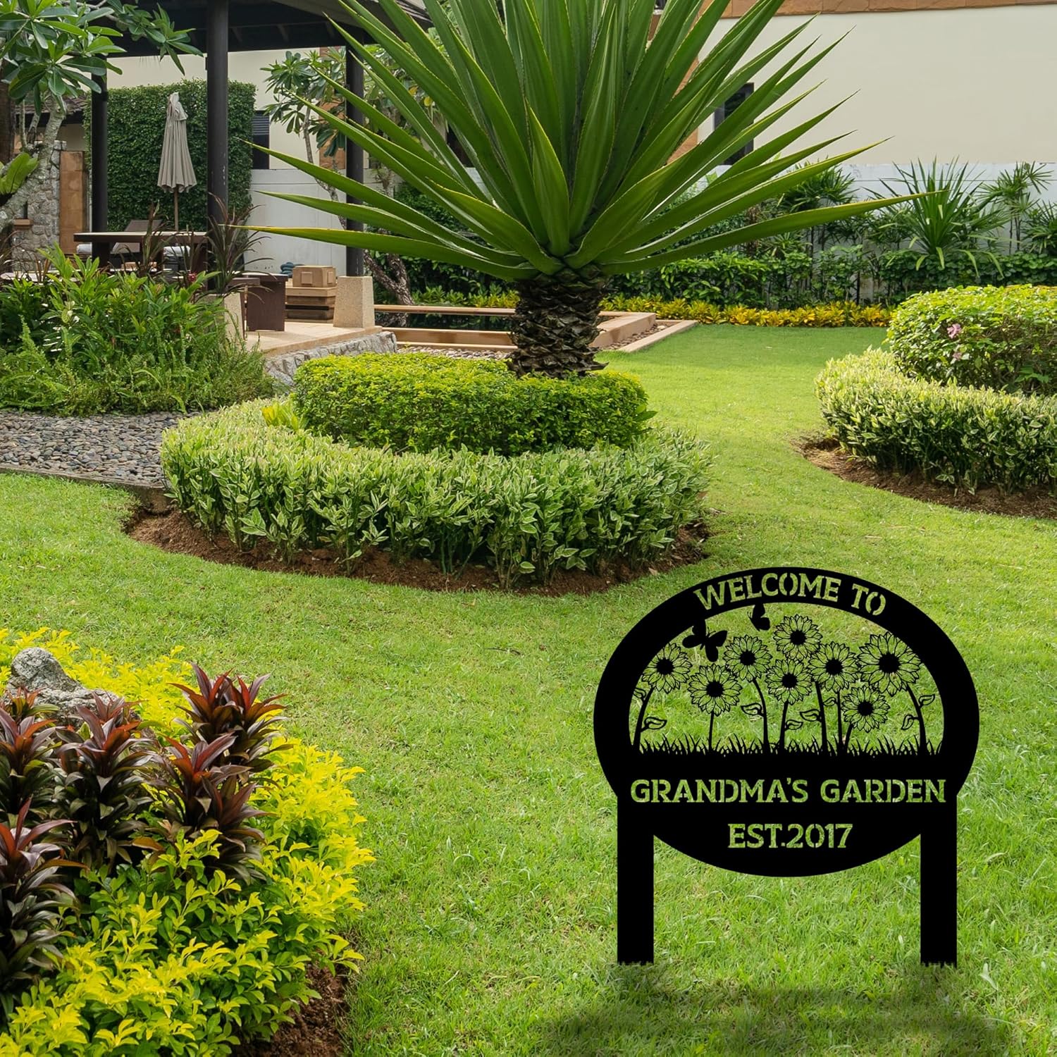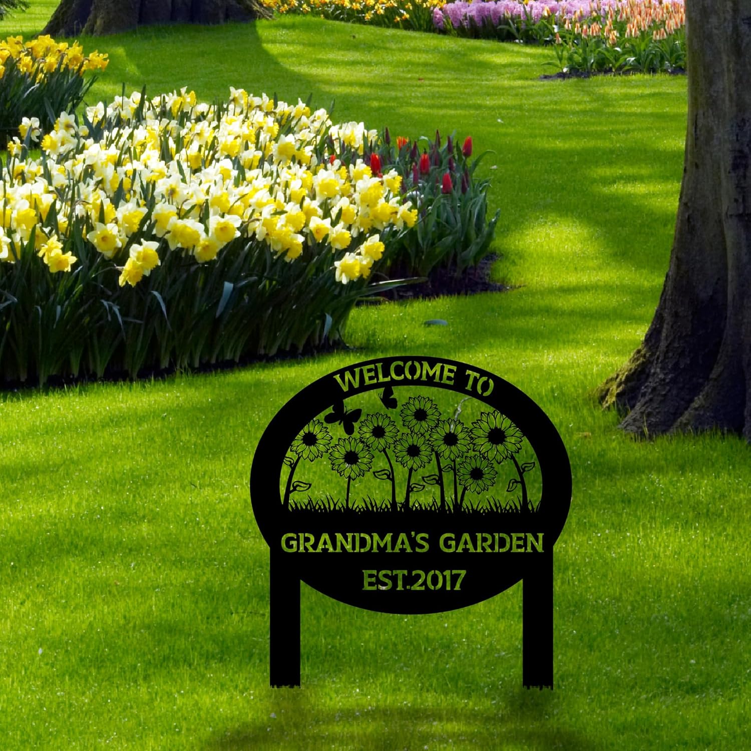 Personalized Metal Garden Sign with Stake, Custom Flowers Garden Decor for Outdoor, Custom Family Name Sign, Patio Decorations, Lawn Art, Farmhouse Decorative, Housewarming Gift