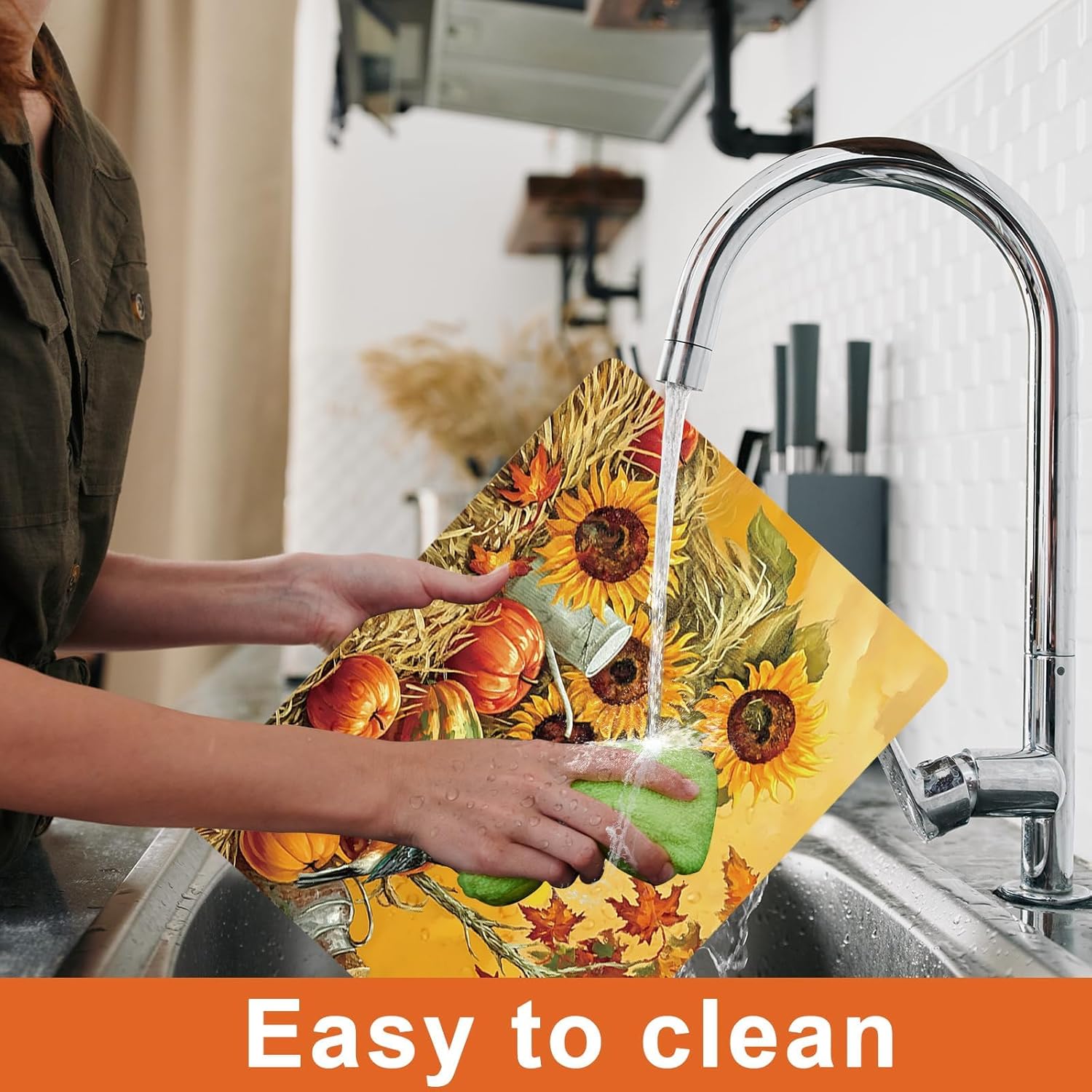 - High-Quality material:Fall pumpkin table placemats are crafted from plastic.Fall Thanksgiving placemats are waterproof and heat-proof,odorless and safe, making table mats durable and supporting long-term use.