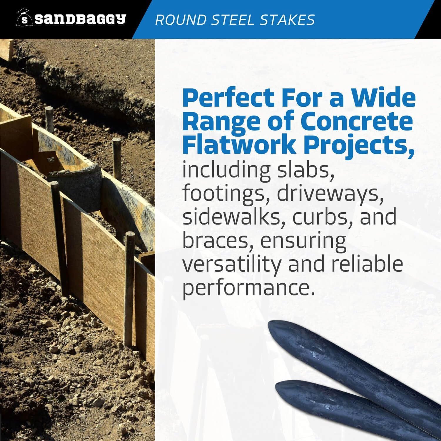 - PERFECT FOR A WIDE RANGE OF CONCRETE FLATWORK PROJECTS, including slabs, footings, driveways, sidewalks, curbs, and braces, ensuring versatility and reliable performance.