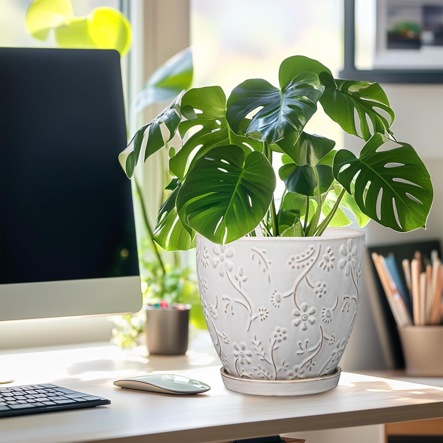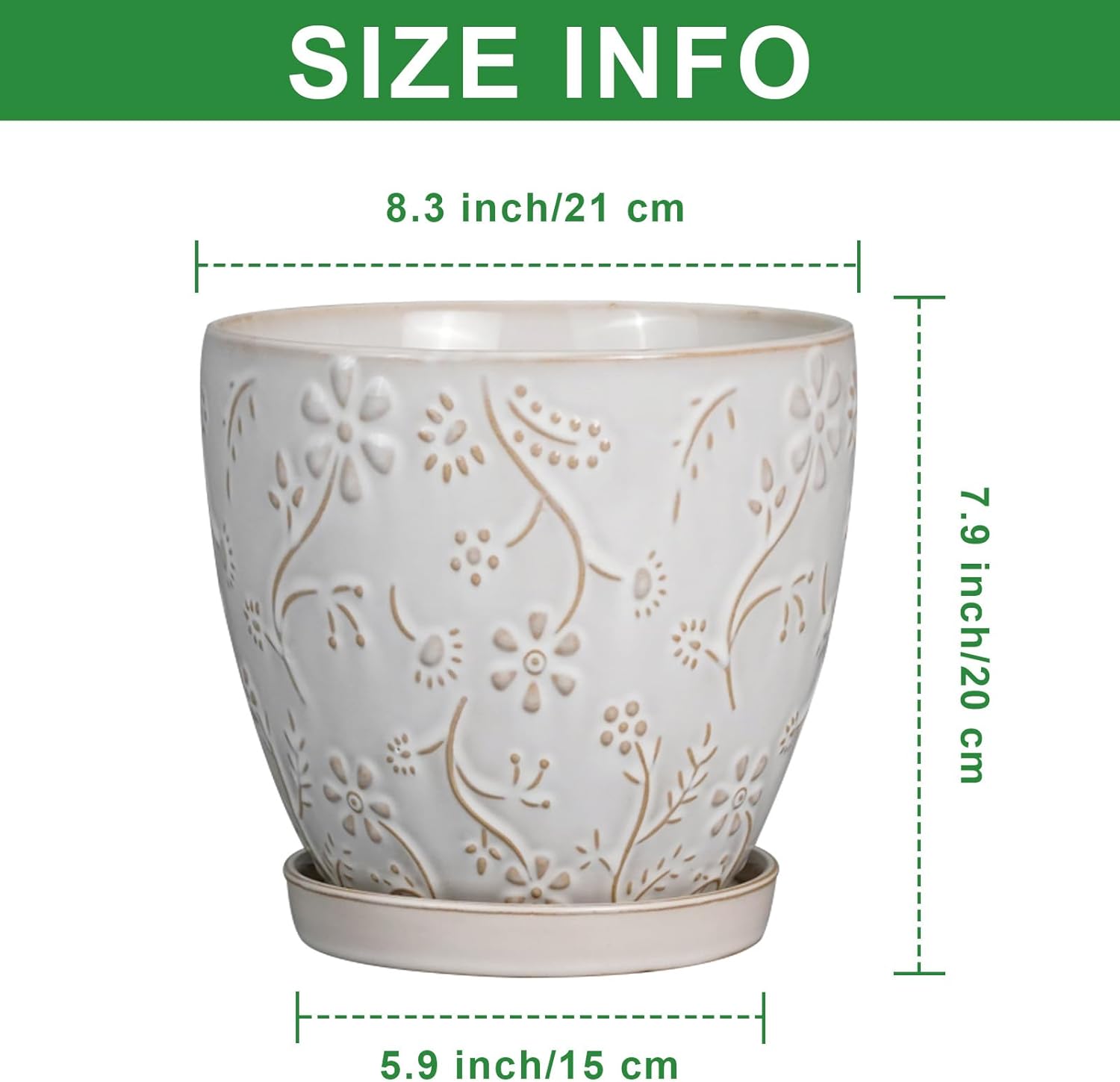 - Stylish Appearance: Our ceramic planter has a white main colour, a beautiful embossed petal and leaf pattern on the surface, elegant appearance making it ideal for home decor, garden decor and office decor