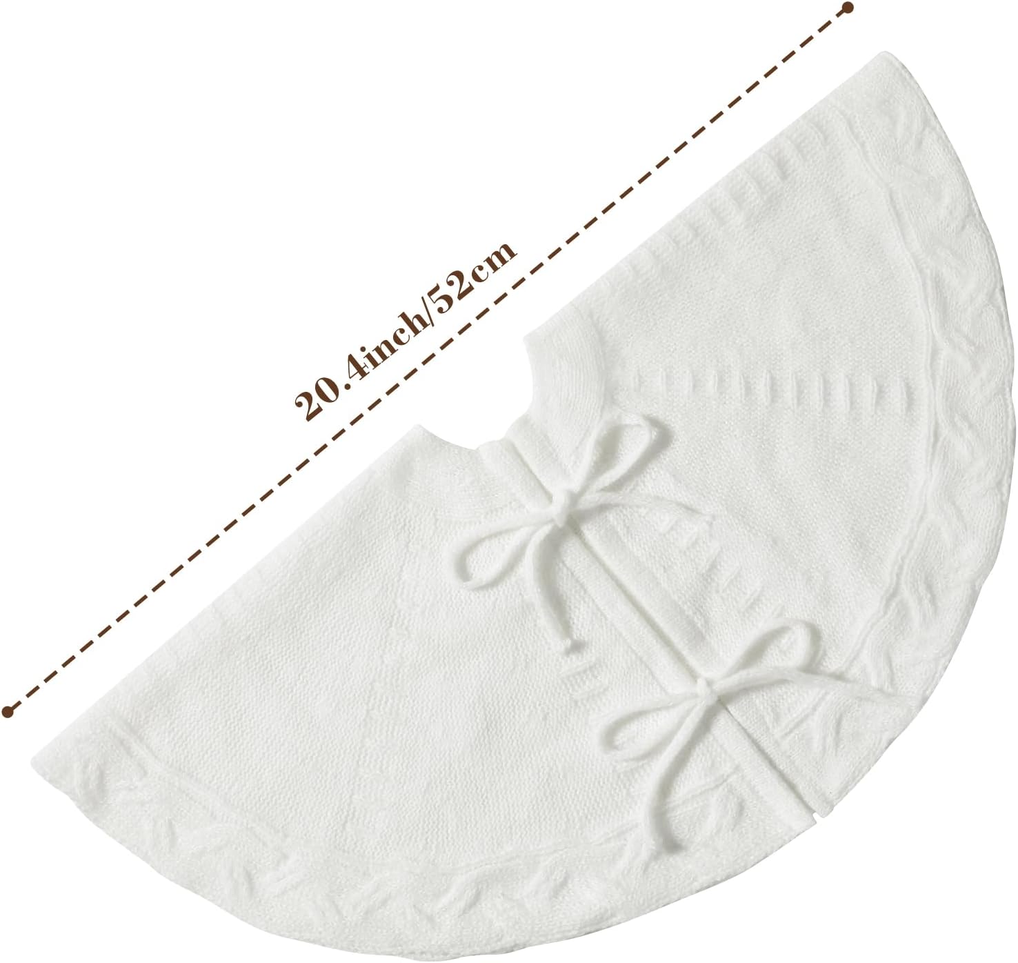 Mini White Tree Skirt,21 Inches Knitted Christmas Tree Skirt,Christmas Tree Decorations, Farmhouse Christmas Decor Xmas Holiday Home Party Decorations
