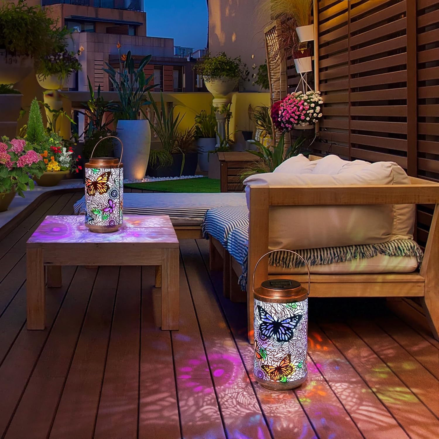 2Pack Solar Lanterns Outdoor Waterproof Colorful Butterfly Garden Gifts for Women, Multicolor Solar Outside Lights Patio Lantern for Yard, Backyard, Porch, Mothers Day Gifts for Mom Grandma Wife