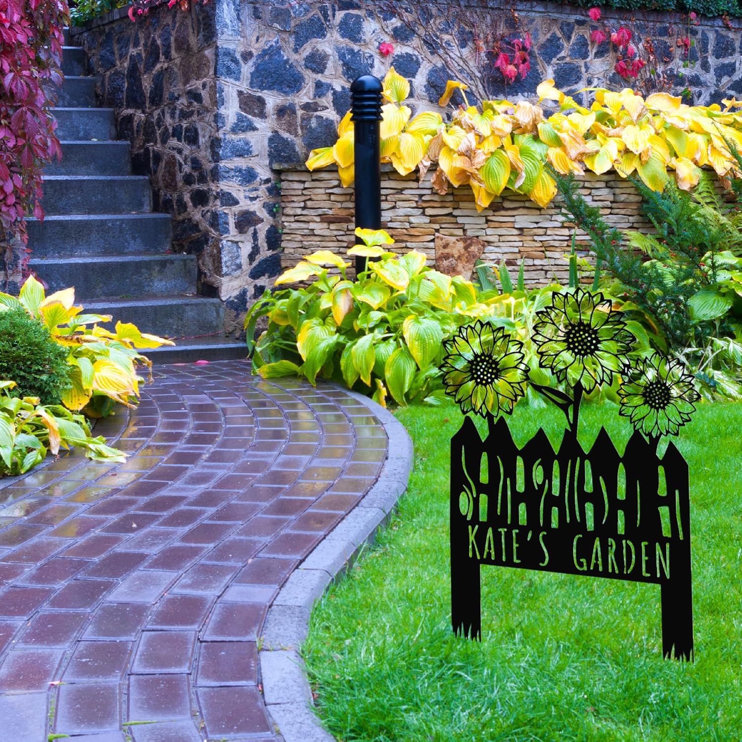 Custom Sunflower Metal Garden Sign with Stakes, Flower Garden Decor, Personalized Family Name Sign, Farmhouse Yard Decorative, Patio Art, Mother's Day Gift, Mom Gift, Housewarming Gift