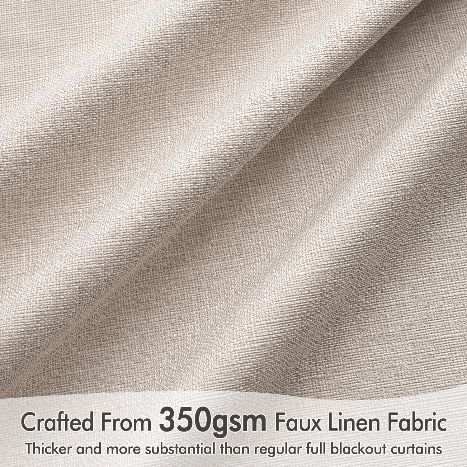 - INNOVATED MATERIAL: Crafted from premium thick linen-like fabric with a substantial weight of 350 GSM, these curtains surpass standard blackout options in thickness, luxurious texture, and functionality. The advanced four-layer coating ensures 100% light blocking, insulation against heat and cold, and effective noise reduction. The vintage burlap texture adds timeless charm and highlights their high-quality feel. Energy-efficient and durable, they provide privacy and a cozy atmosphere year-round